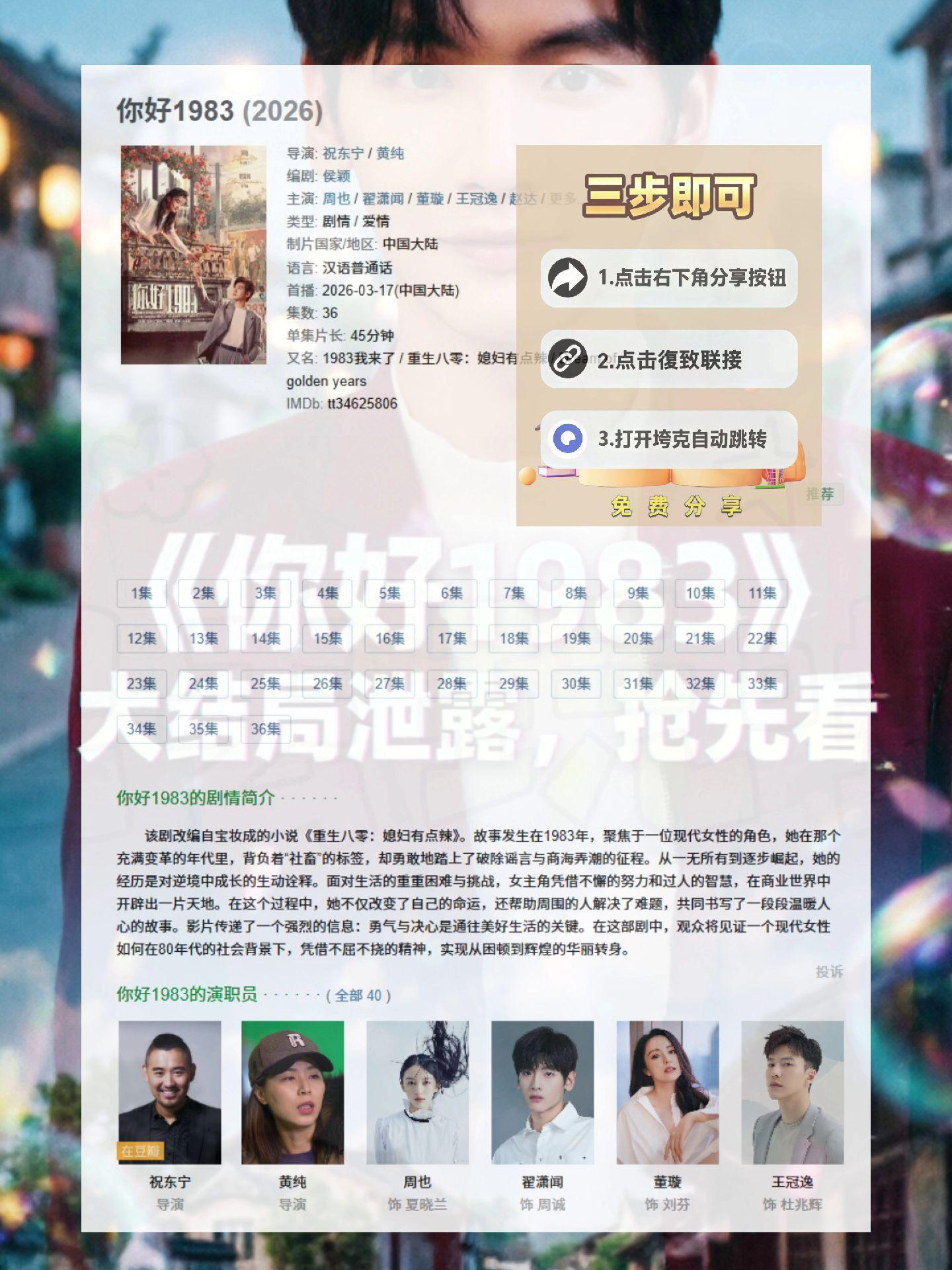 伏脂晑稳霖辰曜洞座《你好1983》1~36集完整抢先看,已经熬夜看完了...