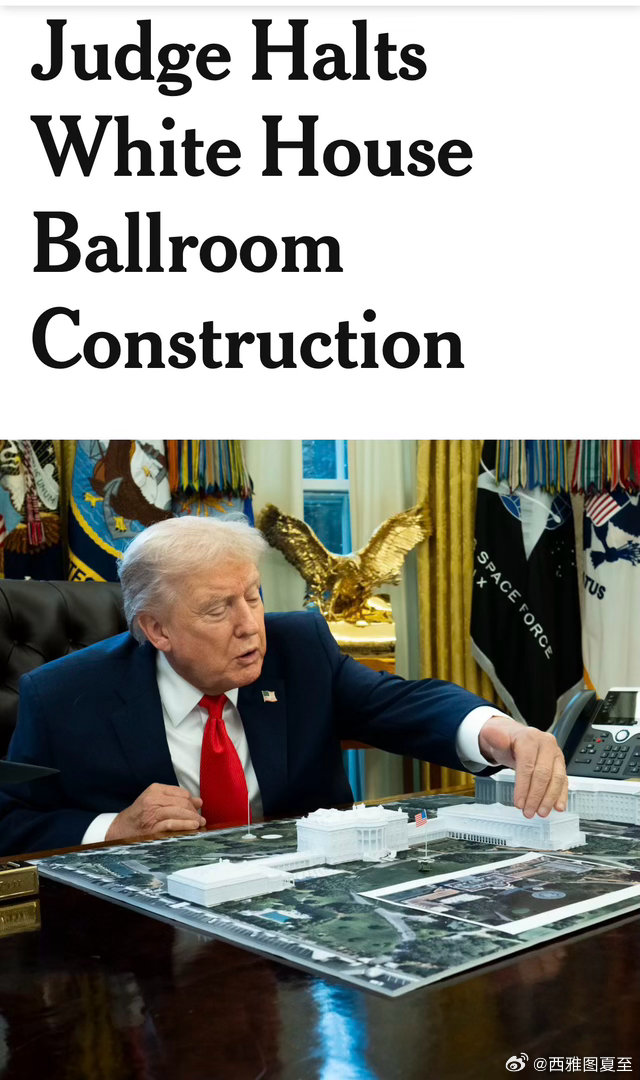 联邦法官判:总统无权在白宫盖宴会厅,需要国会授权,施工必须立即停止