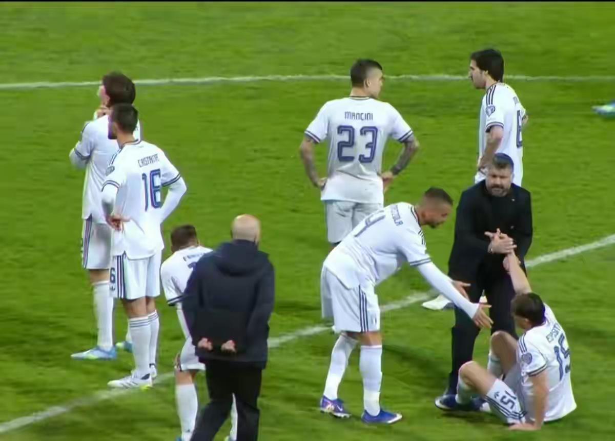【点球大战败给波黑,有点沮丧的加图索一个个拉起自己的队员】2026.4.1 世预赛欧洲区附加赛,波黑 1-1 意大利,点球 4-1,总比分 5-2。 结果是意大利连续三届无缘世界杯,加图索率队出局。 悲壮一幕,又见硬汉的温柔。 点球罚丢、出局瞬间,意大利球员瘫倒、跪地、掩面,多纳鲁马眼神空洞。 加图索自己也极度沮丧、眼眶泛红,但强忍着情绪,逐个去拉、扶、安慰瘫在草皮上的队员。 他拍背、拥抱、低声鼓励,把所有痛苦自己扛,不让球员崩溃。 比赛出现关键转折,各种刺激、离奇、悲情的要素都具备。 第16分钟,基恩破门,意大利1-0领先。 第43分钟,巴斯托尼最后一人犯规染红,意大利少打1人。 第79分钟,塔巴科维奇补射扳平,1-1。 加时,10人意大利死守,拖入点球。 点球大战,埃斯波西托踢飞、克里斯坦特中横梁。波黑4罚全中,意大利1-4惨败。 加图索赛后,硬汉哽咽。 “拿匕首捅我,血都流不出来了,被抽干了。” “小伙子们不该承受这个,我为他们骄傲。” 不谈自己未来,只心疼球员。 记录我的2026