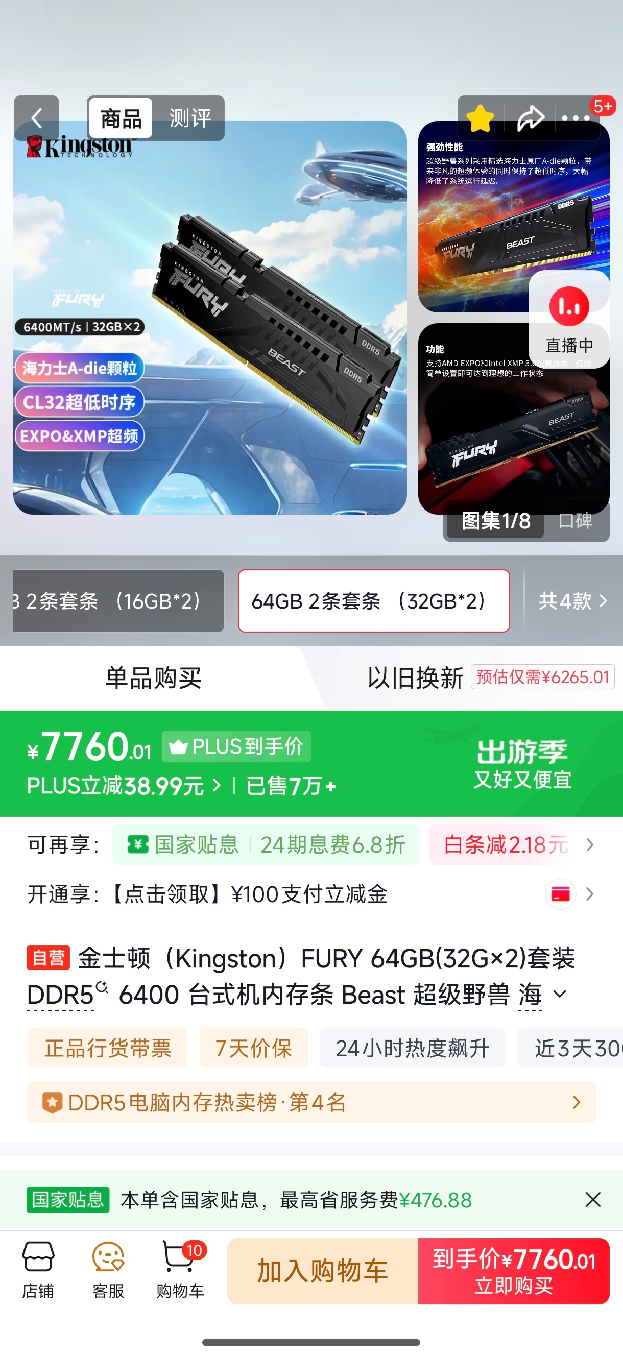 内存条价格大跳水 这俩配件躺在我购物车好久了我咋没见降价啊1T内存2k块钱 32G内存7k 啥配件都还没买先干掉1万块钱