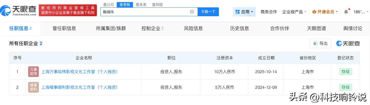 【鞠婧祎回应税务情况当日涨粉3万 鞠婧祎涨粉17万】未发现鞠婧祎涉税问题 3月31日,国家税务总局上海市税务局稽查局发布有关于艺人鞠婧祎被实名举报偷税漏税的情况通报:“经认真核查,未发现举报所反映的涉税问题。” 天眼查App显示,鞠婧祎名下关联2家企业,均处于存续状态,包括上海万事如祎影视文化工作室(个人独资)、上海橘事顺利影视文化工作室(个人独资),上述企业均为鞠婧祎个人独资企业。 第三方数据显示,鞠婧祎平台近30日涨粉17.4万,3月31日单日涨粉3万。 天眼查信息:-c7334628504