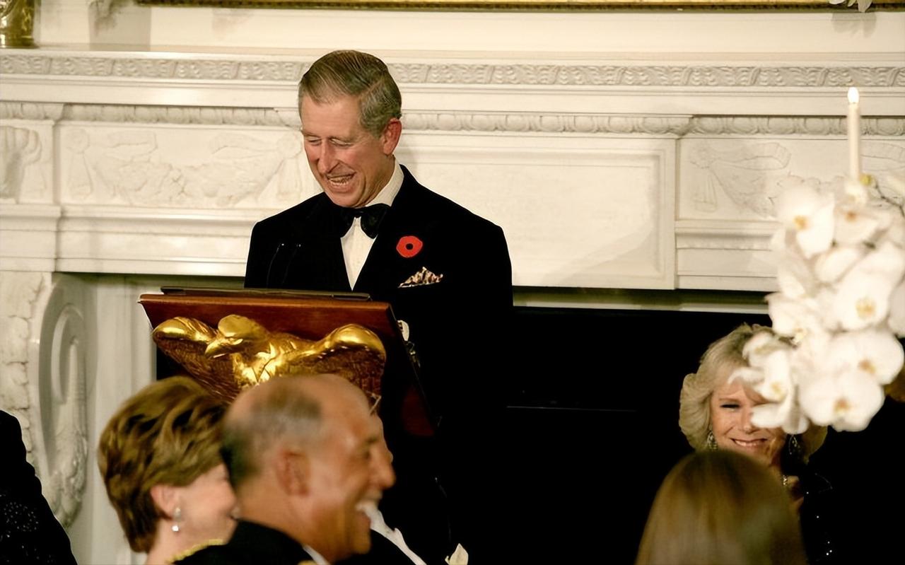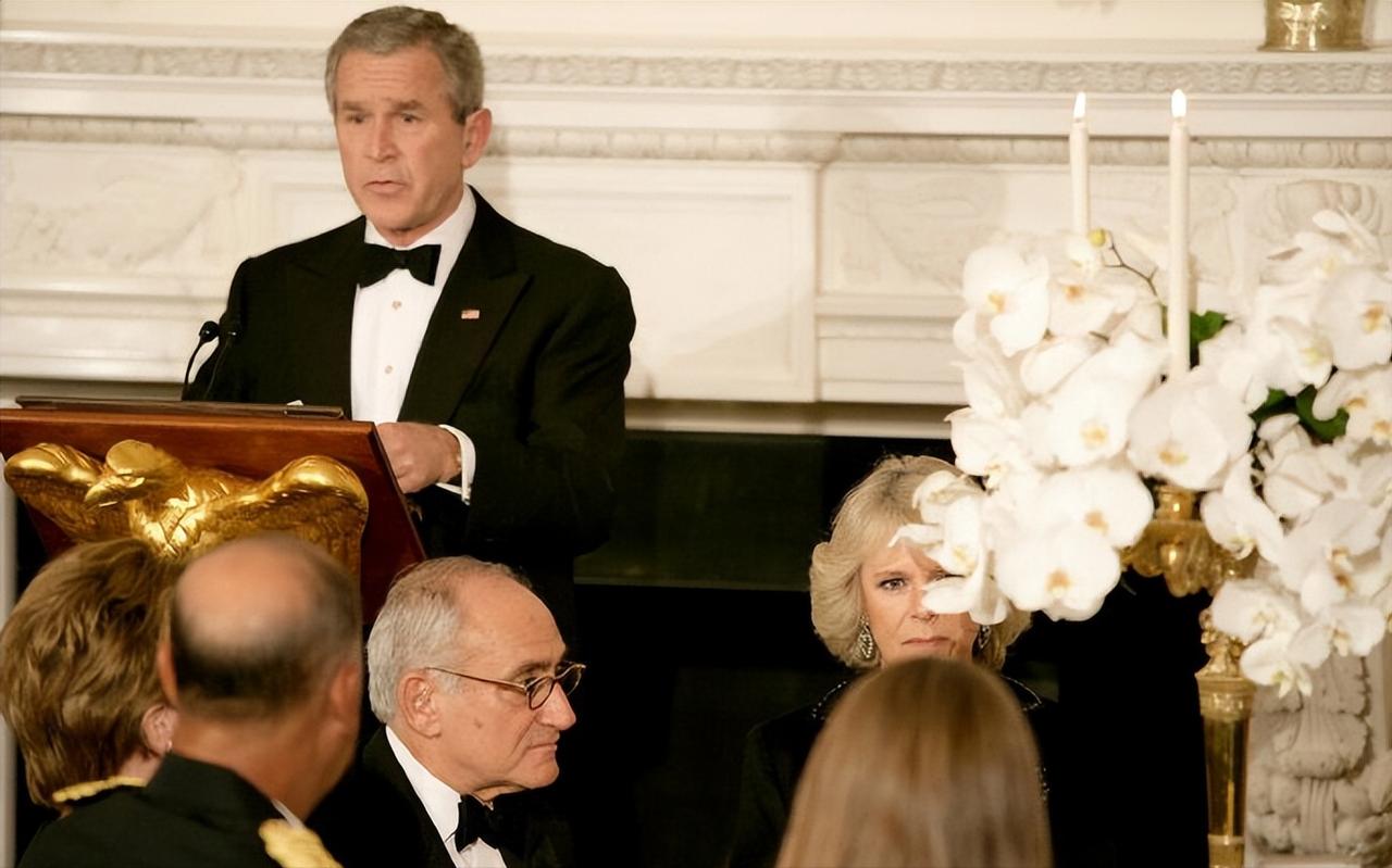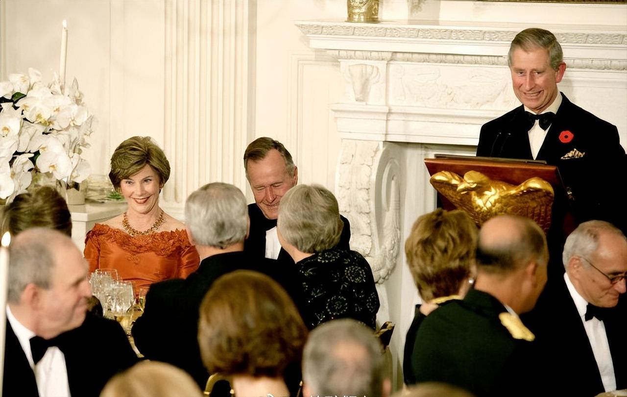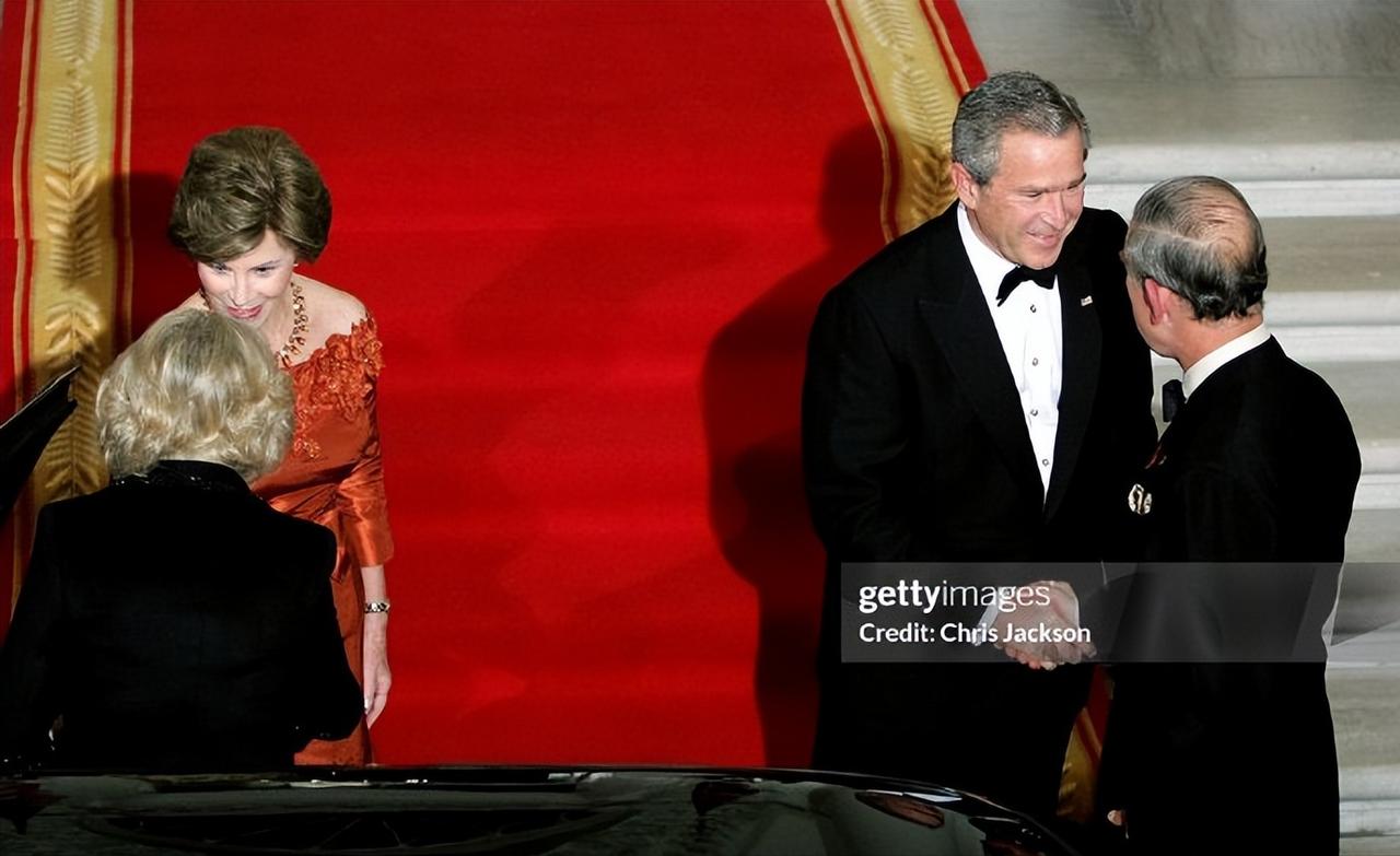 2005年11月2日,威尔士亲王查尔斯王储和妻子康沃尔公爵夫人卡米拉盛装亮相,一同在白宫参加晚宴。 这对王储夫妇纠纠缠缠多年,终于在年过半百之际成功迈入婚姻的殿堂。 2005年,两人大婚,威廉王子和哈里王子陪着父亲查尔斯一同迎娶继母卡米拉。 这次出访,也是查尔斯和新婚妻子卡米拉的首次海外访问。 作为康沃尔公爵夫人,但是并不是威尔士王妃,首次出访,参加这样重要的晚宴。 卡米拉虽然也是贵族出身,还是王储夫人,但是对比同龄的第一夫人布什夫人,无论颜值,还是气质,亦或者衣品,卡米拉还是逊色不少。