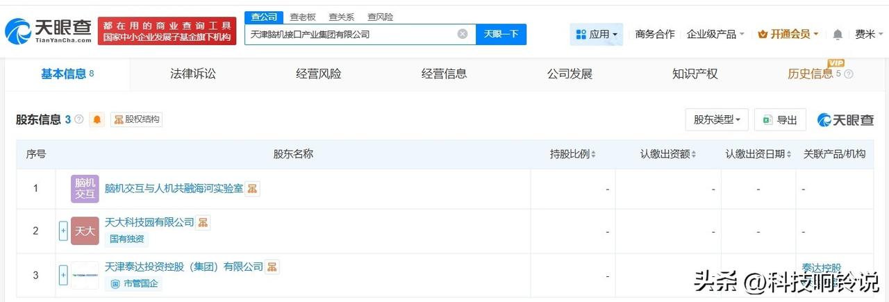 【天津脑机接口产业集团登记成立 注册资本10亿】 天眼查App显示,近日,天津脑机接口产业集团有限公司成立,法定代表人为刘德胜,注册资本10亿人民币,经营范围包括科技中介服务、人工智能应用软件开发、软件开发等,由脑机交互与人机共融海河实验室、天大科技园有限公司、天津泰达投资控股(集团)有限公司共同持股。 天眼查信息: