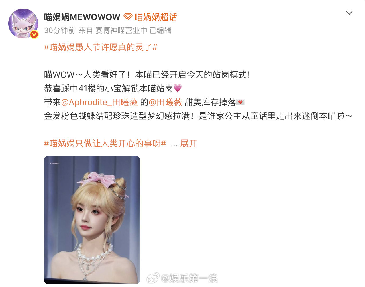 理解张凌赫说田曦薇是小笼包了田曦薇千金猫这段完播率百分百 喵娲娲太会选啦!田曦薇金发蝴蝶千金猫造型梦幻又灵动,张凌赫形容“小笼包”超贴切,白白甜甜,完播率百分百真的不意外✨