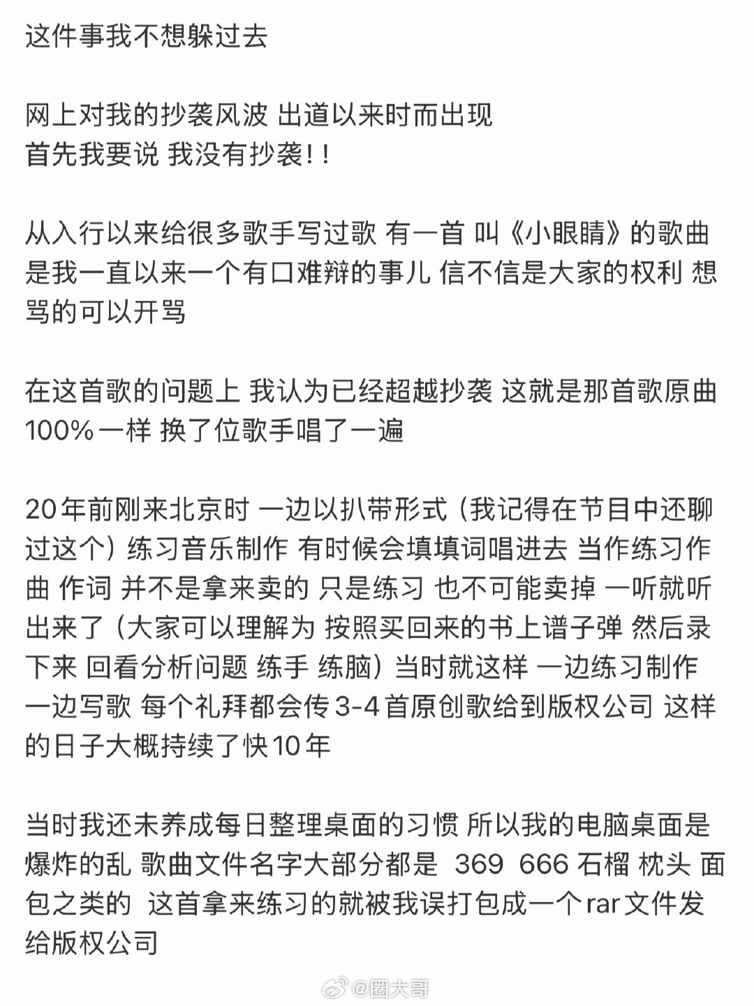 这一看就是李荣浩写的李荣浩原创歌曲《小眼睛》被指抄袭后,李荣浩发长文否认,字里行间都能看出李荣浩的愤怒,就是说这一看就是李荣浩写的,不愧是全能创作人啊,李荣浩的语言表达能力,我直呼哇塞了,这么刚的浩哥,牛啊!李荣浩的语言表达能力