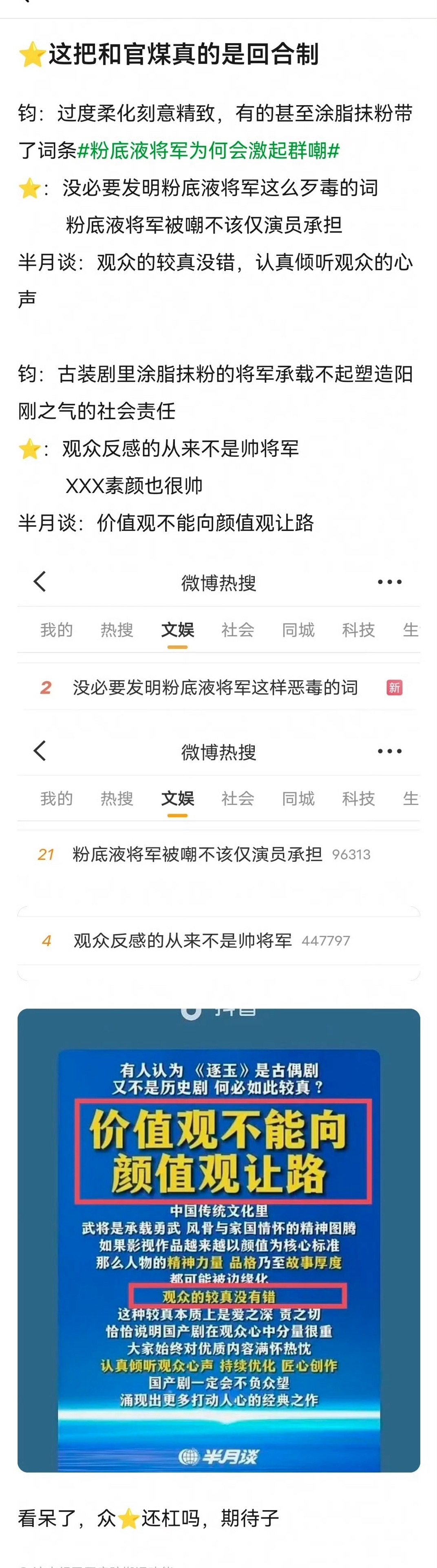 曝要对粉底液将军现象开研讨会了《逐玉》这次“大出圈”张凌赫粉丝真是惹了最不该惹的人居然让工作室取证官媒钧正平 半月谈评论区被冲成这样,简直就是对国家权威的挑衅❗️