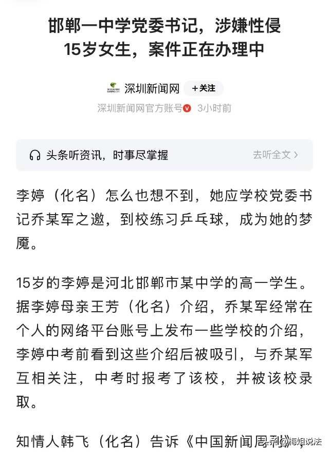 河北邯郸,一女生念书的时候,校内一个男子说邀约女生去打乒乓球,女生很信任这个男子,真的就赴约去练习。谁知道,这名男子趁女孩不注意,直接就强行侵犯了她。事发时,女孩才15岁,回家后一直偷偷哭泣,妈妈看到孩子自己网购避孕的物品这才产生了怀疑,追索到这位男子。没想到,这个男子为了逃避责任,跟孩子妈妈说:我赔你10万元,实在不行赔20万。 听到这么无耻的“免责条约”,女孩妈妈几乎要气疯掉了,自己做了坏事,拿钱就能免责吗? 深圳新闻网4月1日报道了这则新闻。 15岁的小李今年刚读高中一年级,正是青春美好的年纪。 要说到这边读书,也是因为她自己有看到这个学校的宣传。因为有一位男子乔某,很喜欢在自己的个人社交平台,发布这些信息。 女生小李看到这些信息之后,自己也点了关注,并且还在后台跟乔某联系,她表示:将来很希望来这边念书。 所以后来,小李真的报考了这个地方,并且也如愿进来读书了。 可是谁想到呢,这一切竟然就是铺垫,小李真的是遭遇到了一场噩梦。 在被录取之后,小李就被这个乔某给注意到了。因为女生小李很喜欢打乒乓球,这个乔某就经常约了小李去做练习。 后来就到了事发当天,乔某又约了小李来校练习乒乓球。 事发当天,乔某把小李给约到了校内,说还要继续加强练习。小李很天真,真的就赴约了。 谁知道,乔某又让小李去他办公室,并没有去练习室。当小李进了他的办公室之后,乔某就对小李进行了强行的侵犯。 事发之后,女孩就跟经历了噩梦一样,每天浑浑噩噩,也不敢将这件事告诉自己的妈妈。 每每想到办公室里发生的一切,小李就会变得很抓狂,夜里也睡不着。 小李的妈妈注意到,女儿的情绪开始发生变化。本来性格挺活泼的,现在变得越来越抑郁,整个人越来越害怕说话。 有的时候,凌晨4点的时候,就看到孩子爬起来痛哭,询问发生了啥事,孩子也不说话。 妈妈还以为,是不是最近学业紧张了? 再后来,妈妈看到孩子在网上去购买避孕的物品,这个时候,她才大惊失色,知道女儿肯定是经历了什么不大好的事情。 妈妈赶紧跟校内联系,事件慢慢推展开,查到了乔某的身上。 得知自己的事迹败露,乔某说:他愿意给10万元的赔偿。后来又加价:“我可以给20万你!” 听到这样的话,小李的妈妈简直要气死了,犯事儿了,拿钱就想要解决吗,那么自己真的就不配做孩子的妈妈了! 小李的妈妈立刻、第一时间就报了警,并且还希望追究乔某的民事责任、刑事责任。 如今,乔某已经被相关部门批捕,后续会介入调查、进入审讯中。 而小李的妈妈如今的诉求是,希望犯案人员尽快判刑,另外要给孩子办理转学,给孩子做治疗,安排心理抚慰课程,只求女儿能够尽快回到正常的节奏里来。 作为妈妈,一心想的就是保护好自己的孩子;而作为法律,更加会去保护未成年人。 15岁的少女,还是个未成年的莘莘学子。 而眼面前这位男子,利用职务之便,竟然想要侵犯15岁的孩子,他的行为已经构成了侵犯罪、或者负有照护职责人员侵犯罪,依法会面临3年以上有期徒刑。 根据《刑法》第二百三十六条规定,行为违背妇女意愿,强行进行了侵犯,此举构成侵犯罪,会被依法处以3年以上、10年以下有期徒刑。 如果情节较为严重,造成受害人身心伤害,会被处以10年以上有期徒刑。 由此可见,男子的行为已经践踏了法律,必定要面临法律的严厉制裁。 据案件可知,这位男子还是相关工作人员,也就是说是负有特殊职责的人员。根据《刑法》第三百三六条之一规定,行为人存在权利不对等关系,即便女孩已满14周岁,法律仍然禁止发生强奸行为,构成负有照护职责人员侵犯罪,会增加量刑力度。 涉案的女孩,还是未成年人,根据《未成年人保护法》第六十二条规定,附加对未成年做出侵害,则会加重判刑。 也就是说,乔某身为某种特定职务的人员,在发现有侵害未成年的行为记录,发现之后终身不会再被录用。 这就是法律的规定,更多的是为了捍卫未成年的权益和尊严。 针对这个案件,您怎么看?
