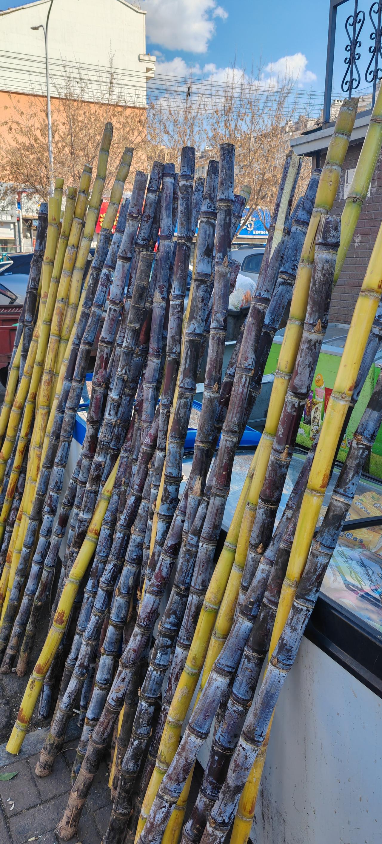 大街上有摆摊卖甘蔗的,颜色不一样,老板说那是品种的事儿,都一样甜… 第一次买,