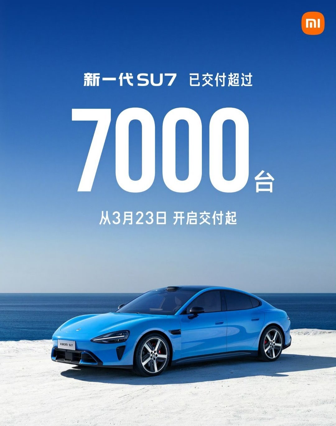 新一代小米SU7交付这几天差不多一天1000台,4月应该能超2万辆吧。加上YU7,小米有机会再次站上月4万台。