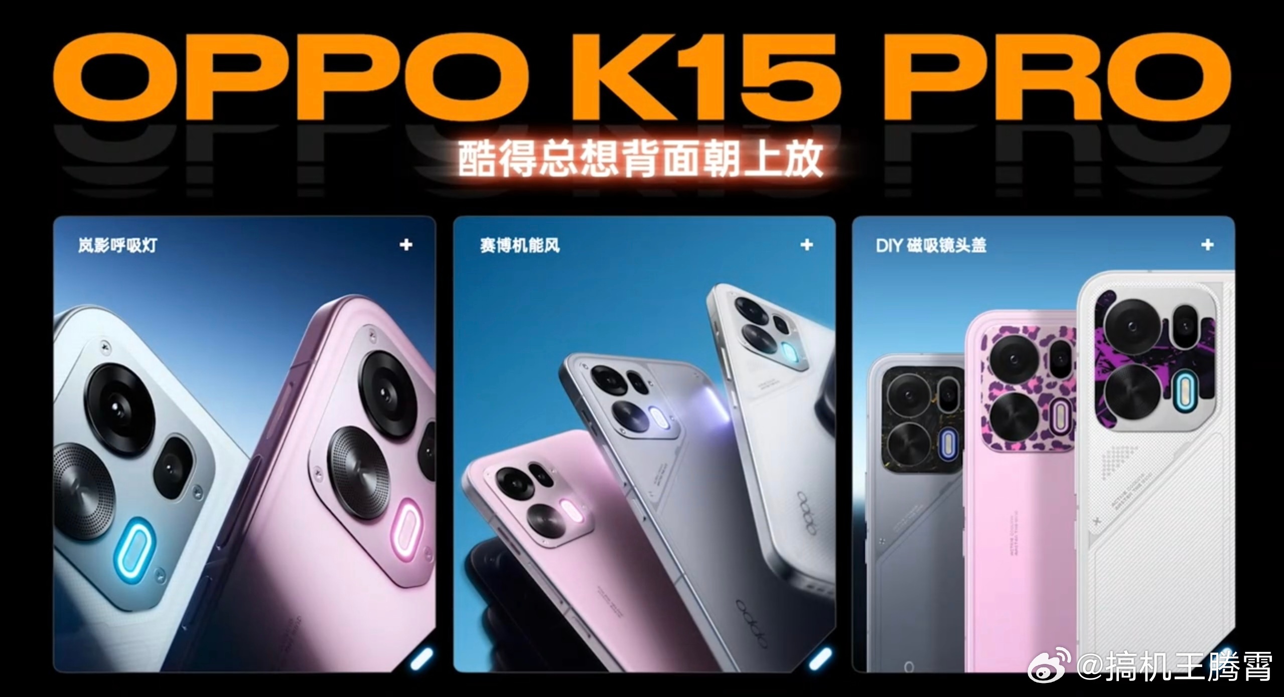 OPPO K15 Pro系列来了,外观方面采用了超薄卡片镜头模组,镜头凸起不超过0.6mm,还加入了磁吸DIY镜头盖设计,有点意思,提供赛博光翼、光尘粉、起源灰、金色传说4个配色。Pro采用6.59英寸屏幕、Pro+采用6.78英寸屏幕,Pro搭载天玑8500 Super处理器,前置1600万镜头,后置5000万主摄 + 800万超广角双摄,内置7500mAh电池 + 80W快充;Pro+搭载天玑9500s处理器,同样也是5000万主摄 + 800万超广角双摄,内置8000mAh电池 + 100W快充。