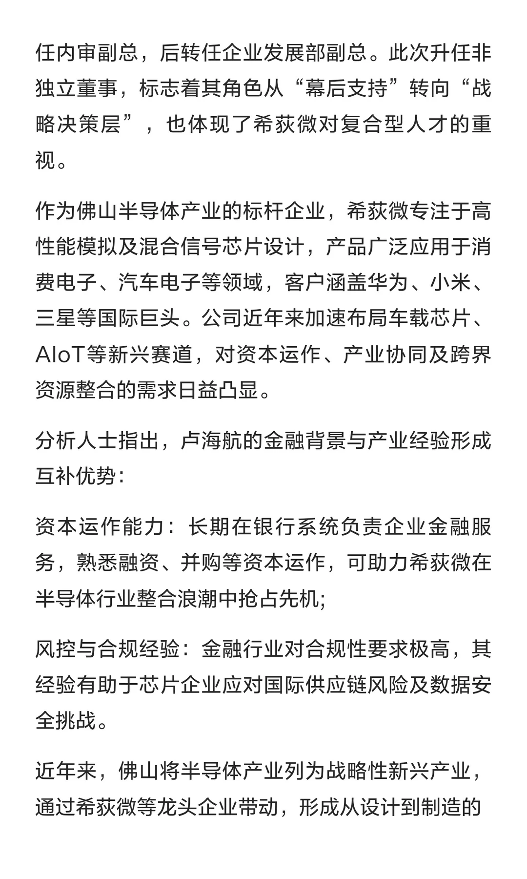佛山芯片大厂新聘非独立董事