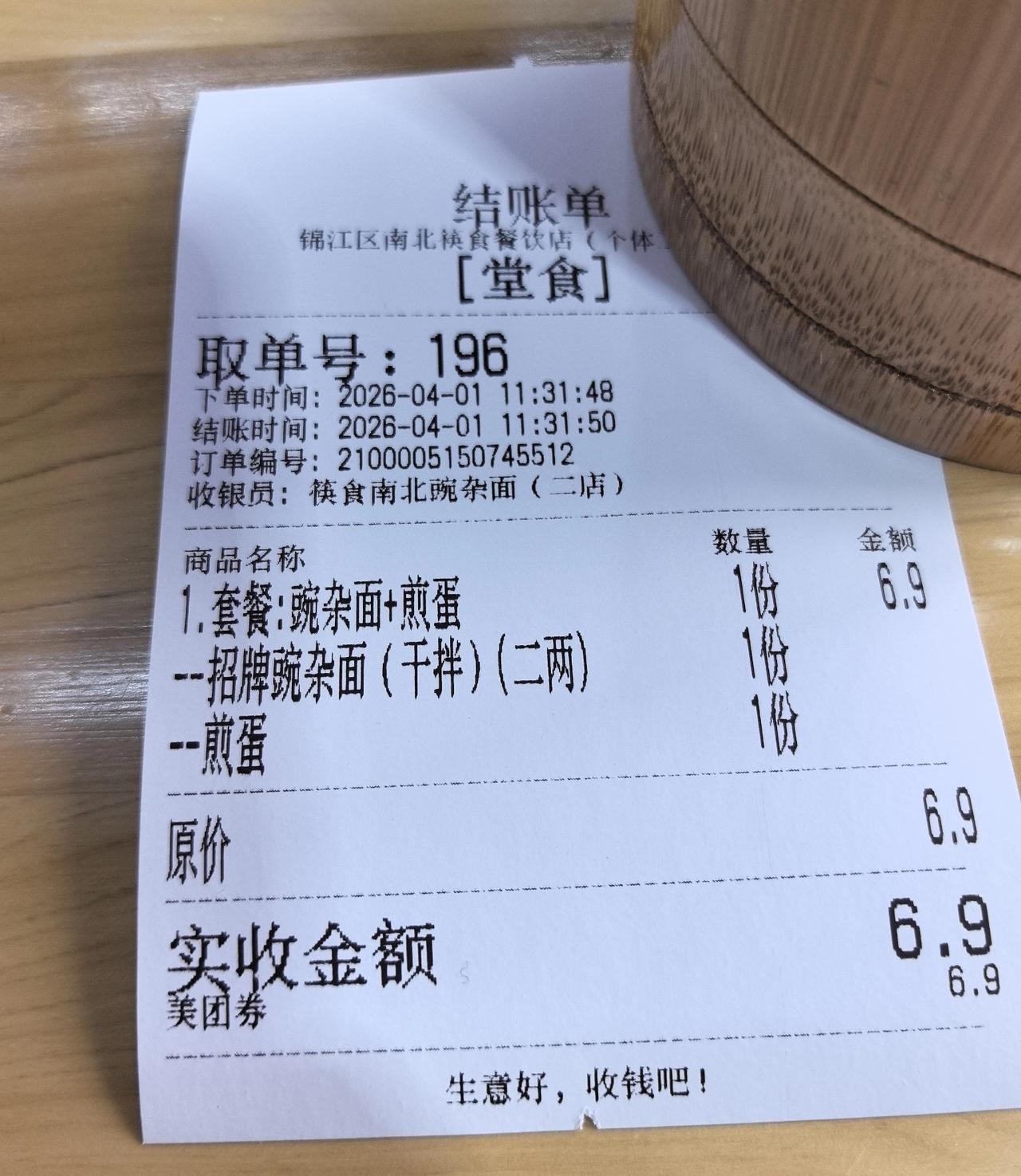 成都的面馆也太卷了吧![笑] 中午尝了一碗经济实惠的豌杂面。[笑] 团购更便宜,
