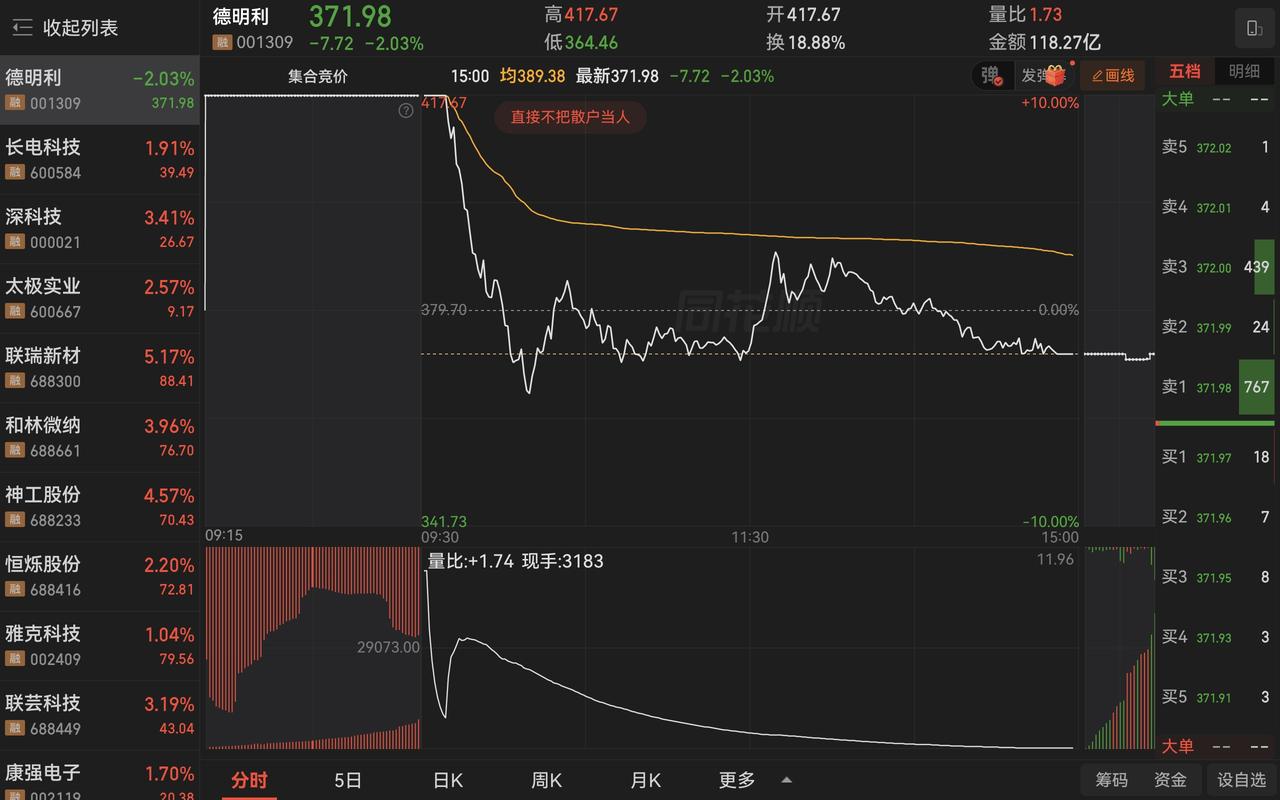 德明利今天的走势很好的诠释了当下的市场生态, 好公司依然要在合适的位置买入, 追高必被砸, 量化高频闻着味就来了。