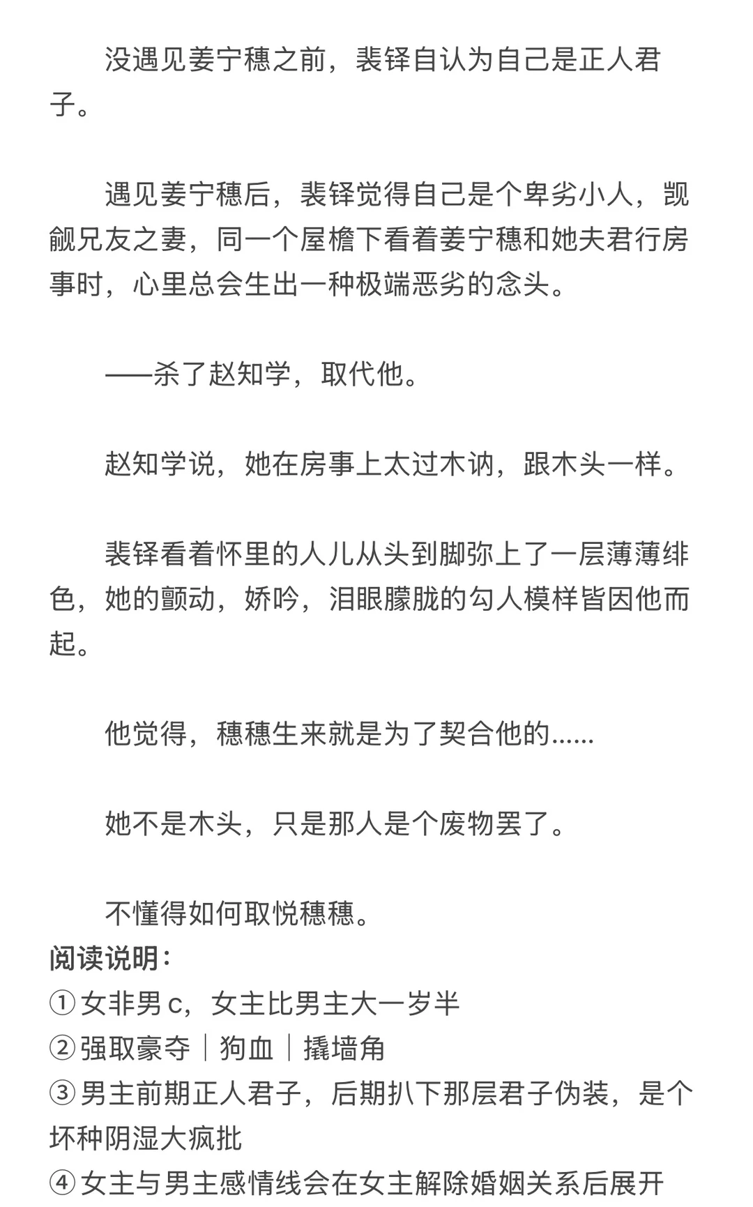 伪正人君子x老实人妻 古言完结 狗血撬墙角