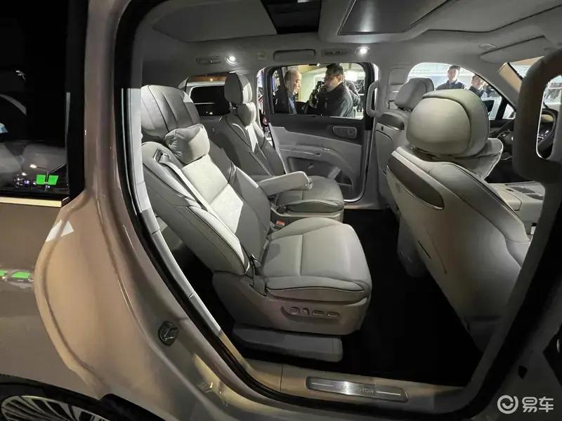 车辆二排将配备零重力座椅、双折叠桌板、头顶娱乐屏、冰箱以及功能控制屏。此外,新车还设置了B柱拉手,方便儿童、老人下车。三排配备了双扶手、一键电动折叠、座椅加热功能。