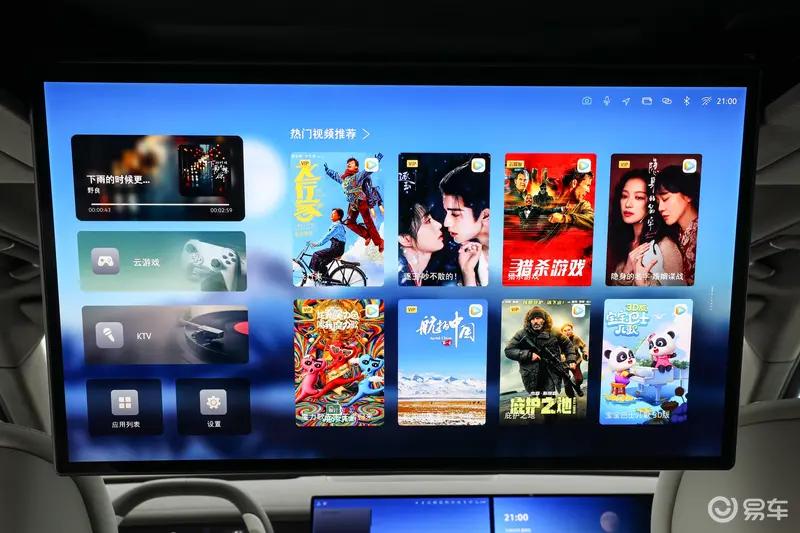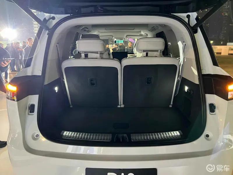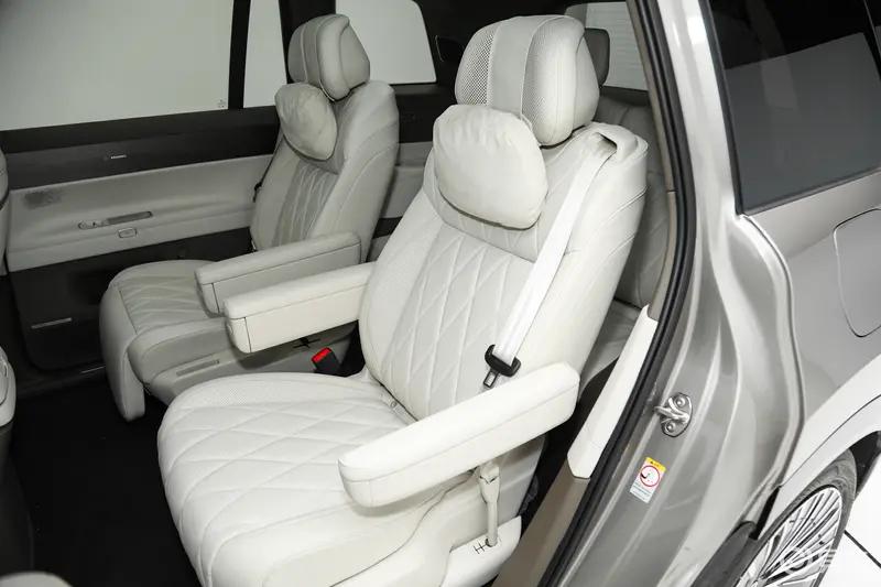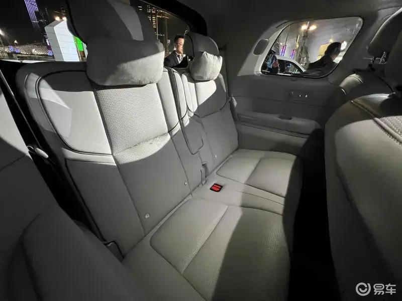 第二排配备21.5英寸吸顶娱乐屏,采用真4K高清分辨率,支持系统级IMLink互联控车功能。二排座椅支持靠背角度电动调节,配备折叠小桌板与可伸缩腿托。后备厢标准容积可容纳6个28英寸行李箱,内部宽度可横置高尔夫球包,婴儿车或露营车无需折叠即可放入。全车储物空间共计9处,包括二排座椅下方的9.2L隐藏式抽屉。