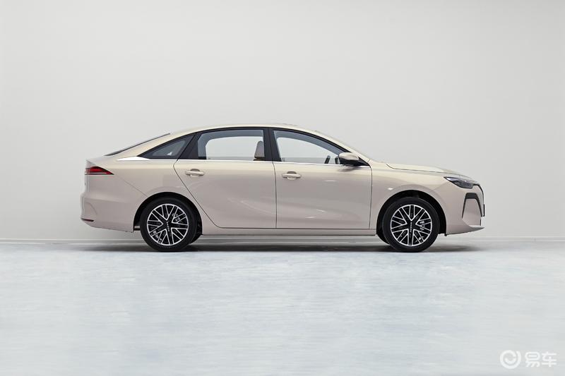 车身侧面,可以看到新车车顶是悬浮设计,后视镜和行李架都是黑色,轮拱很宽,轮圈有点内凹的设计,加上深色轮拱饰条,突出力量感。侧面腰线很高,也很简洁,裙带也用了灯带设计,整体风格偏稳重一点。