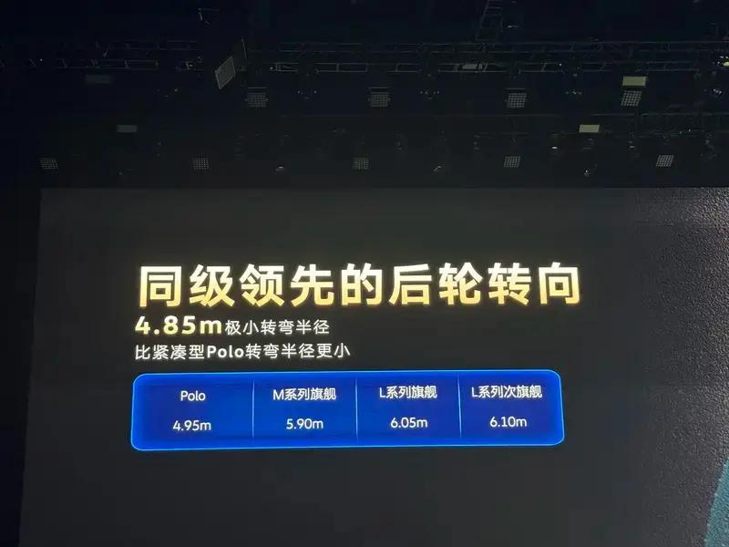 VMC智慧运动控制系统支持以毫秒级速度感知路况,通过协调底盘各部件实现全场景融合控制。此外,新车还配备了后轮转向功能,拥有4.85m的转弯半径。