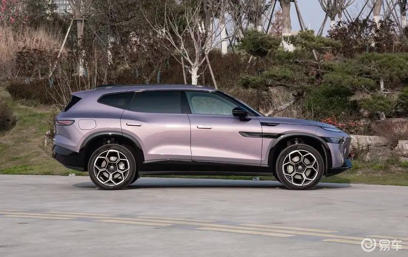 车身侧面,新车整体较为简洁大气。采用了研发投入高达2000万元的天空之镜纯平侧窗。此外新车还搭载21英寸向往之境轮毂和米其林高性能静音轮胎。