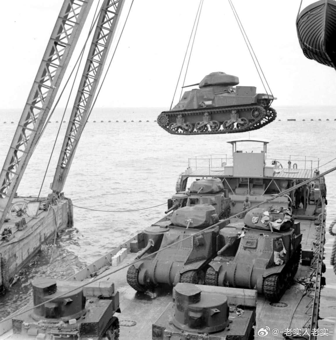 正在埃及卸船的美援格兰特和斯图亚特坦克,摄于1942年3月。在加扎拉战役开始前英国第八集团军有约300辆格兰特,还有400辆左右在后方。美军援助确实给力,但大量援助的涌入导致英国人没时间进行彻底培训和熟悉装备,只能仓促上场,导致故障频发,完好率感人。