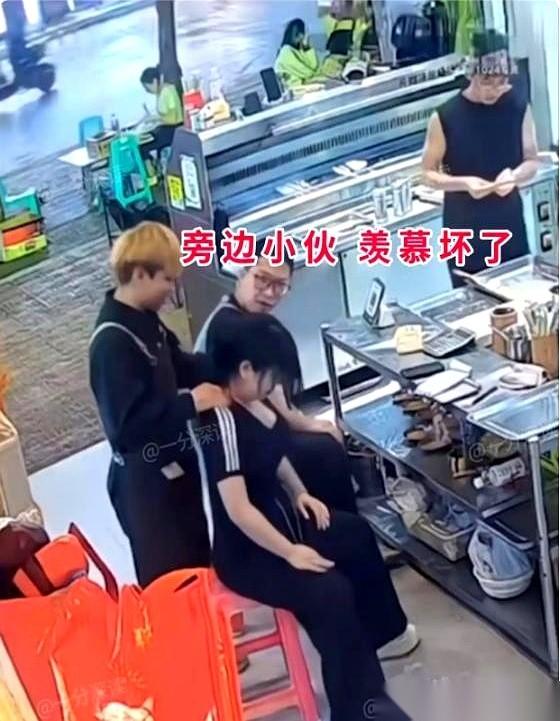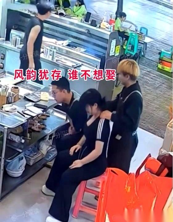 一个25岁的小伙子,在自家打工的饭店里,两只手搭在了老板娘的肩膀上。 不是搀扶,是揉捏。 店里没什么客人,就剩零星的几桌。他站在老板娘身后,手指发力,从后颈顺着肩胛骨一路推下来,老板娘整个人都陷在椅子里,头微微后仰,闭着眼,嘴角是藏不住的松弛。 旁边桌收拾碗筷的阿姨,动作都慢了半拍,眼神瞟过来,又赶紧低下头去。 角落里,一个手机镜头悄悄抬了起来,对准了这一幕。 视频一上网,底下直接炸了锅。有人喊话老板娘:“风韵犹存,这小伙子有福气!”更多的人直接开始编故事:“别猜了,过不了半年,这小子就是新老板。” 你说这小伙子,到底是凭卖力气吃饭,还是凭会来事儿当老板?