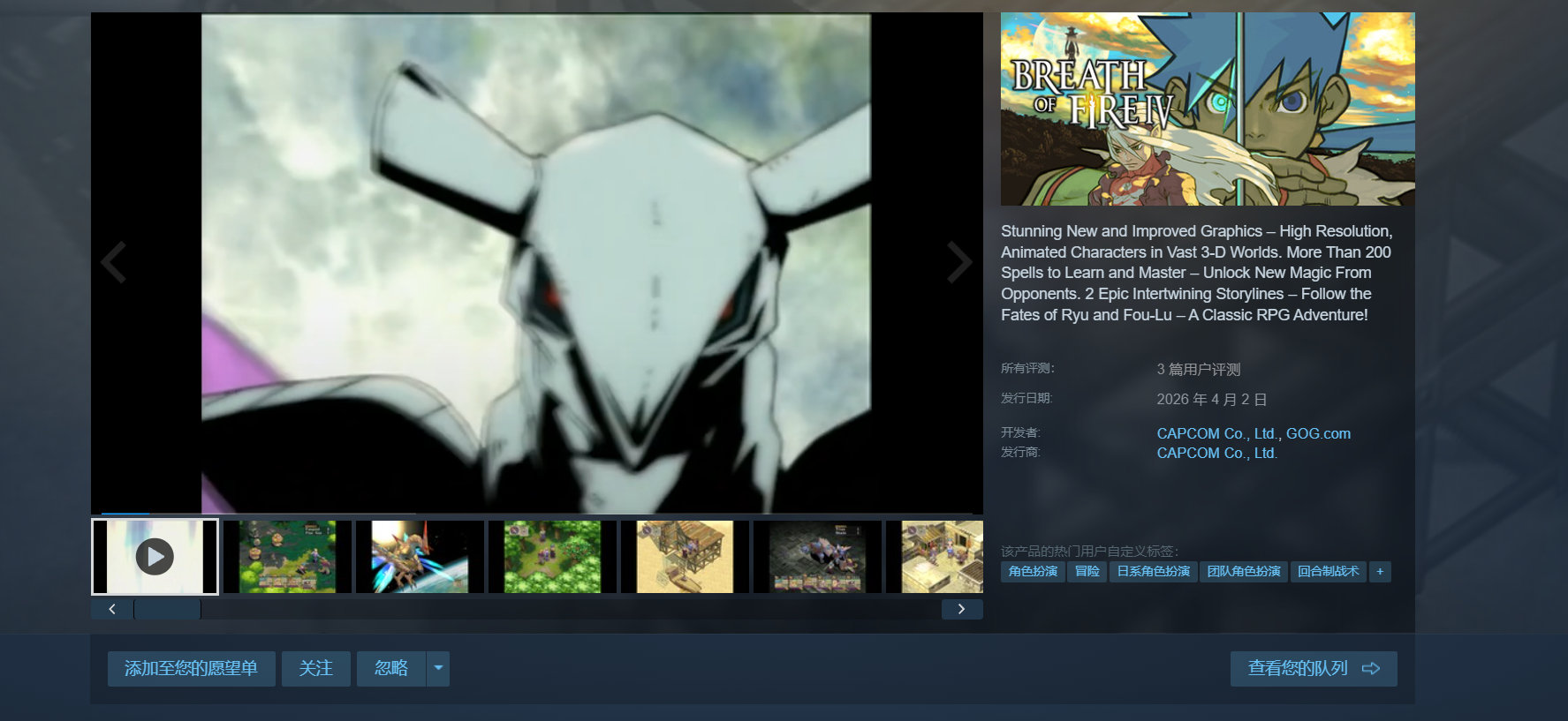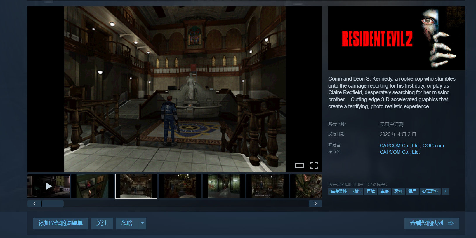 原版《生化危机》三部曲以及《龙战士4》现已登陆Steam,折扣价均为25元,暂不