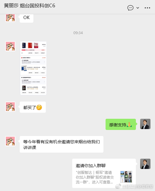 更感动的是,她随即发出邀请:“等今年看有没有机会邀请您来烟台给我们讲讲课”。