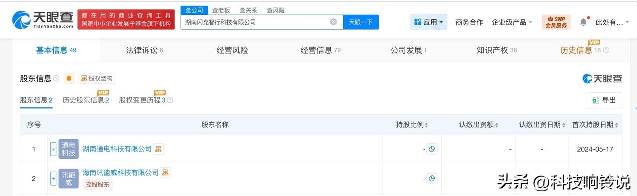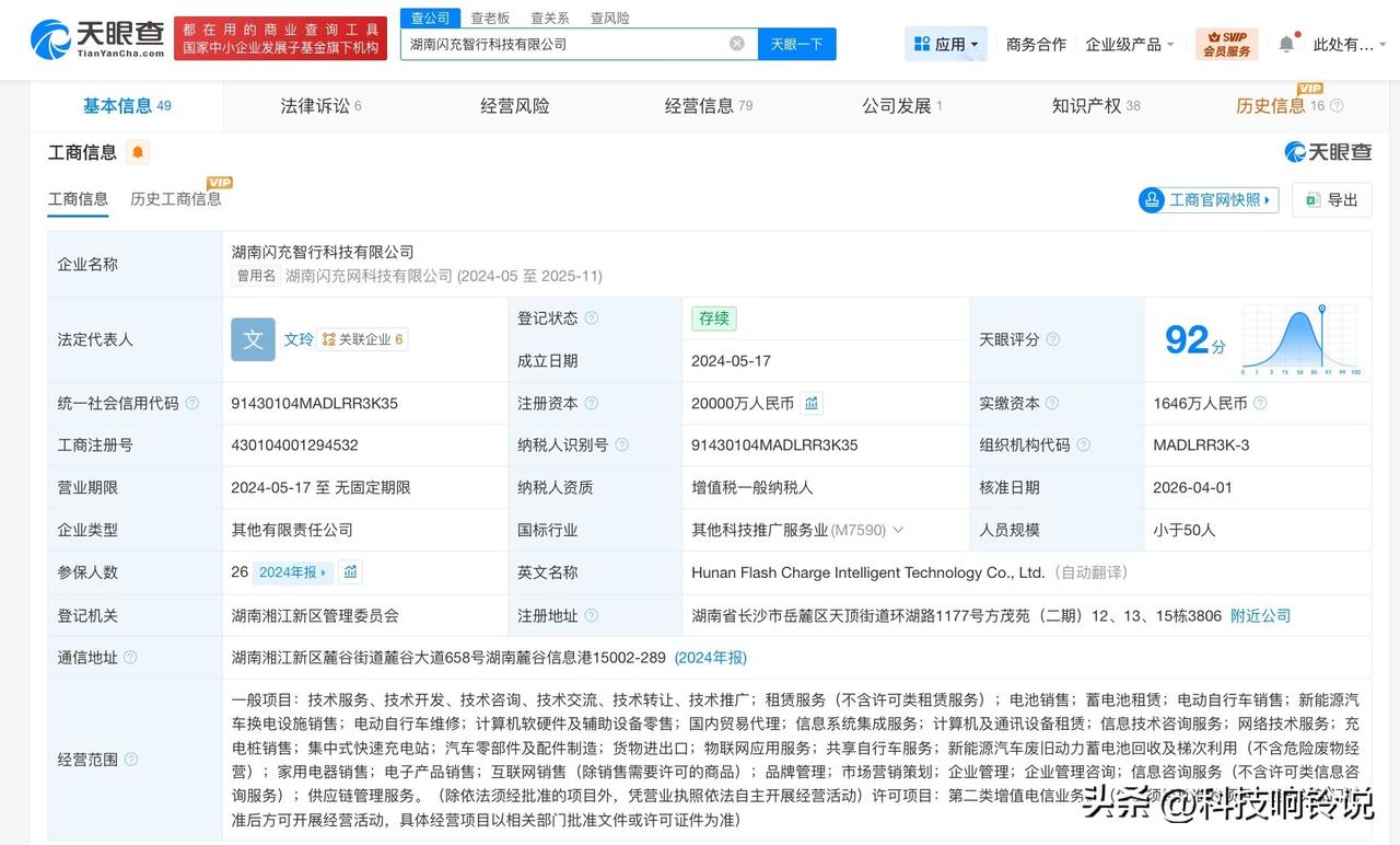 【遭315曝光的闪充智行增资至2亿 遭315曝光的闪充智行近日增资】 天眼查工商信息显示,近日,湖南闪充智行科技有限公司发生工商变更,注册资本由1亿人民币增至2亿人民币,增幅100%。 该公司成立于2024年5月,法定代表人为文玲,经营范围包括充电桩销售、集中式快速充电站、电池销售等。股东信息显示,该公司由海南讯能威科技有限公司、湖南通电科技有限公司共同持股。 据媒体报道,今年央视315晚会曝光了狂飙的租赁电动自行车问题,闪充智行被点名。 天眼查信息: