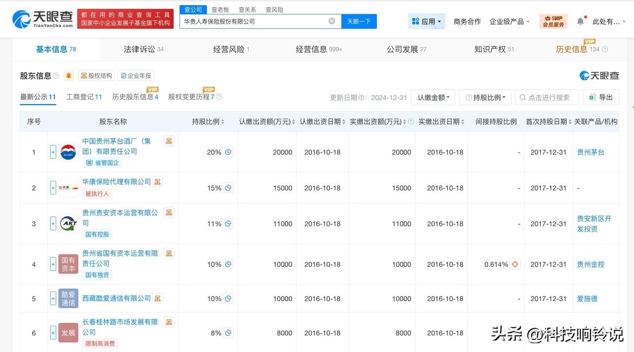 【华贵保险增资至26.15亿 增幅约31%】 天眼查工商信息显示,近日,华贵人寿保险股份有限公司发生工商变更,注册资本由20亿人民币增至26.15亿人民币,增幅约31%。 该公司成立于2017年2月,法定代表人为刘刚,经营范围含普通型保险、健康保险、意外伤害保险、分红型保险,上述业务的再保险业务等。股东信息显示,该公司由中国贵州茅台酒厂(集团)有限责任公司、华康保险代理有限公司、贵州贵安资本运营有限公司等共同持股。 天眼查信息: