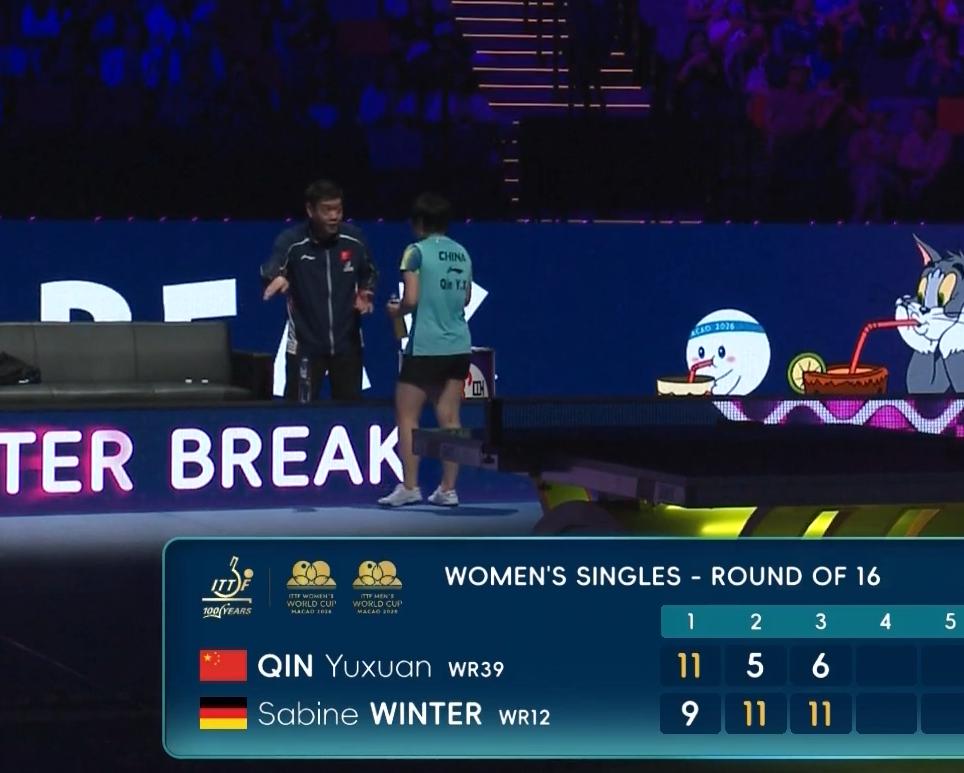 我去!邱贻可跟跟着志强学坏了。 在场边大喊:可以可以! 前两局两人打成了1:1, 第三局 覃予萱5:0开局, 然后连丢3球, 邱贻可怕覃予萱又动摇, 着急大喊:可以可以, 意思是: 战术没错, 不要动摇。 结果覃予萱还是动摇了, 又打反手位。 温特从连赢8球, 11:6逆转覃予萱。