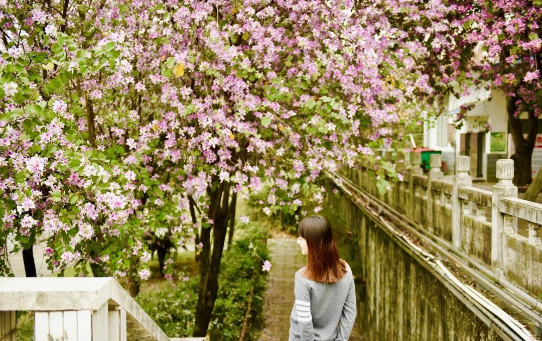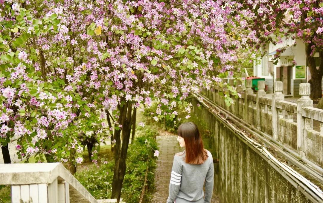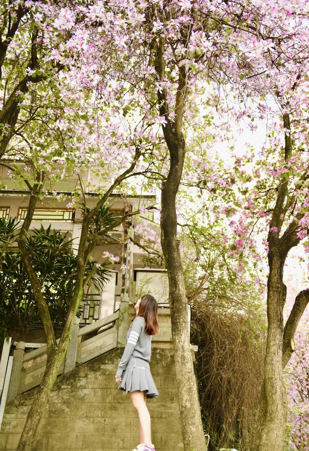 满城尽带紫荆花 风起时,紫荆落瓣成诗🌸 驻足间,满目温柔入画🩷 是春天的美好