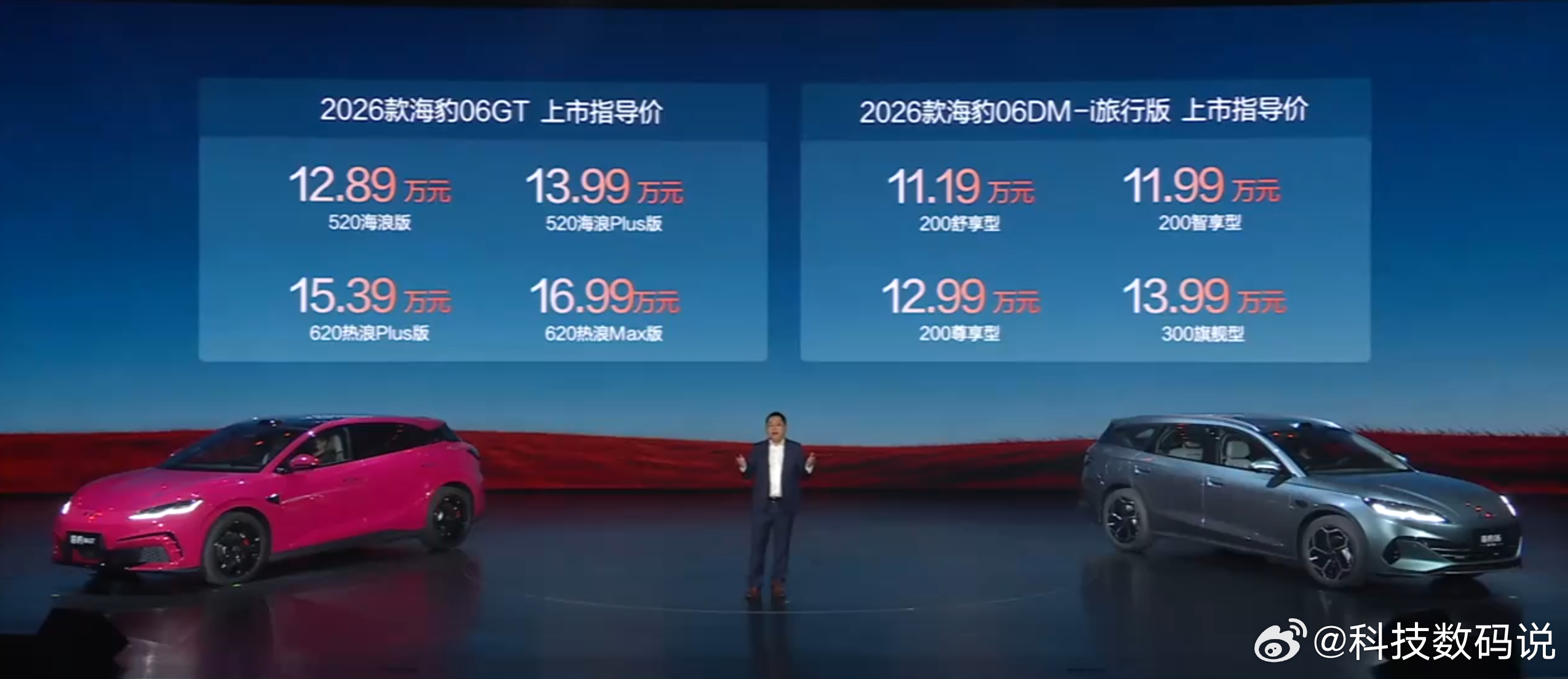 比亚迪这是完全技术下放了,今天上市的2026款海豹06GT也搭载了第二代刀片电池和闪充技术,关键是也送了一年的免费闪充权益,其他配置方面, 有CTB安全架构及云辇-C系统,而且标配了120项越级配置,还可以选装天神之眼激光版,价格也非常给力,12.89万起!另外一款海豹DM-i旅行版,纯电续航达到了300KM,百公里亏电油耗3.15L,比同级燃油车更省钱,配置方面可选装天神之眼 B激光雷达,标配了高速爆胎稳行系统,W-HUD抬头显示,云辇-C等,价格11.19万元起!