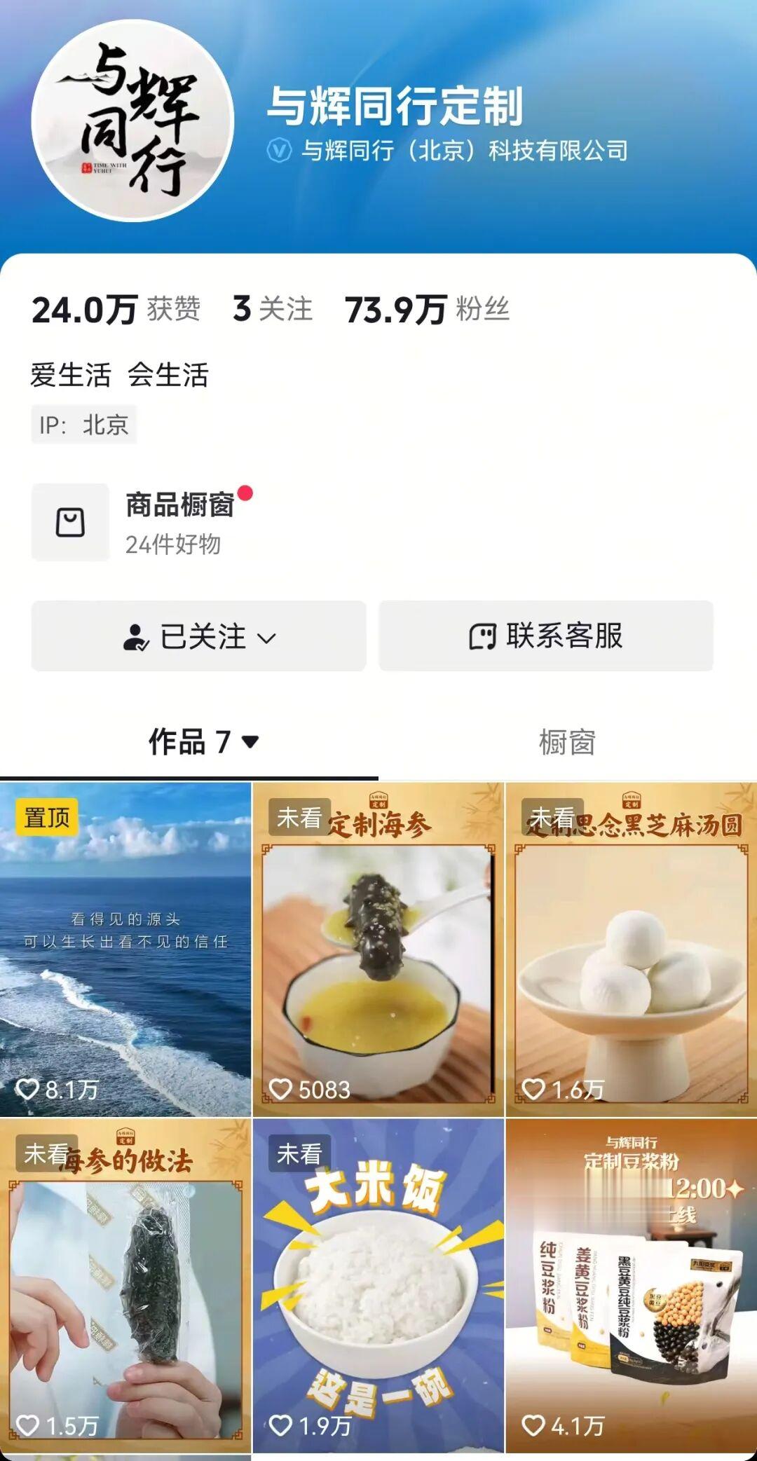 另外,董宇辉团队于近期开设抖音新账号“与辉同行定制”,专门展示定制品从原材料采购到生产的全流程。该账号目前粉丝数已超70万,置顶视频公开了生产车间环境及质检环节。