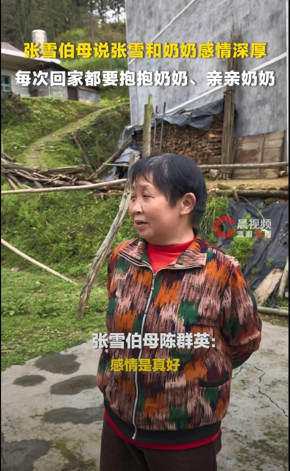张雪的伯母说张雪小时候是奶奶带大的,跟奶奶感情很好。张雪初中毕业后辍学出门打工。