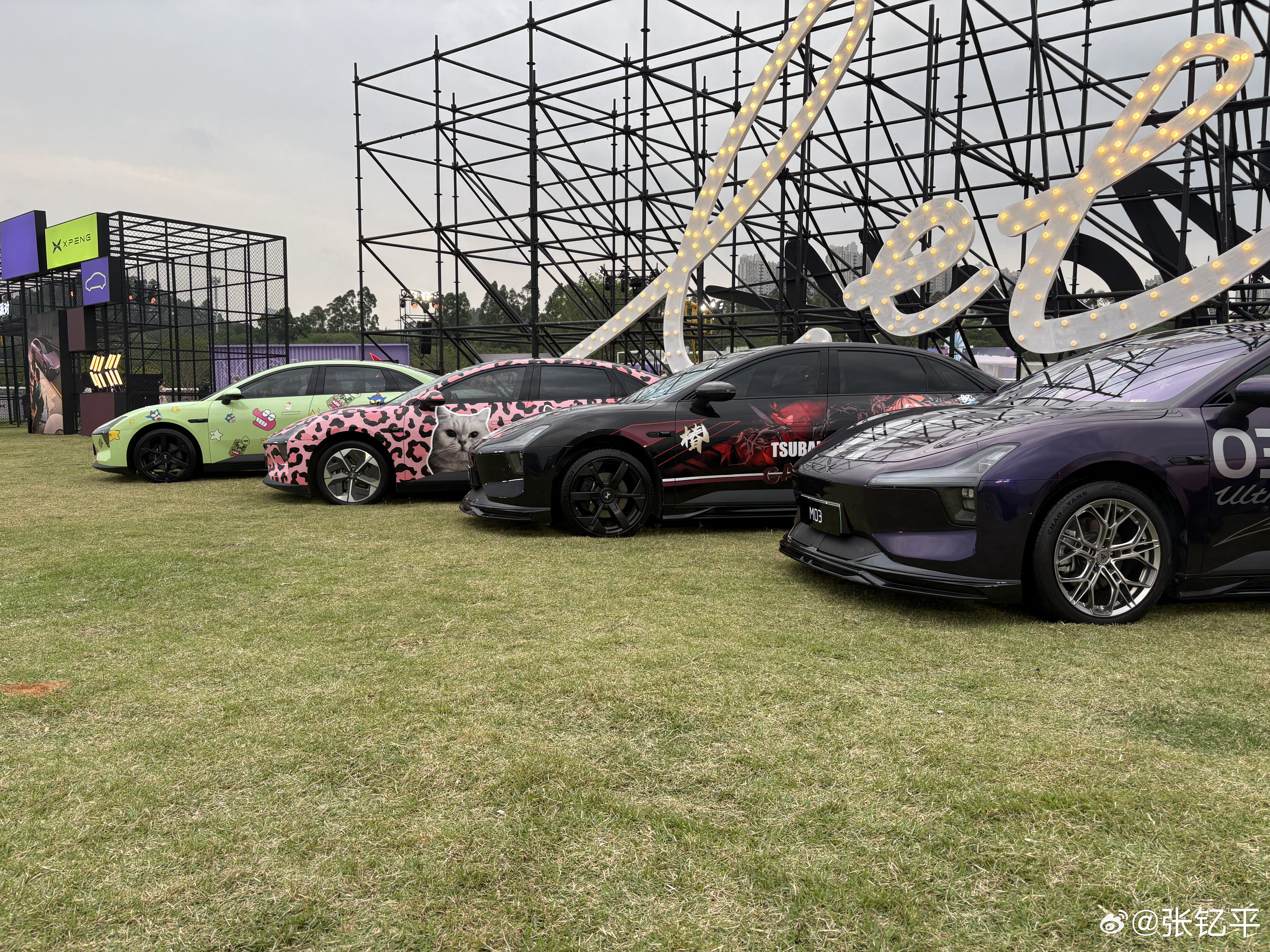 2026款小鹏MONAM03发布会现场,摆放了各式各样涂装的MONAMO3,