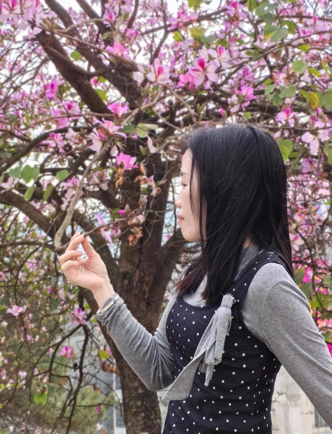 我的春日look 和春天的花花合个影 紫荆花