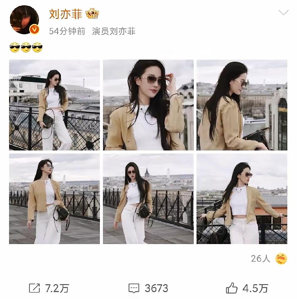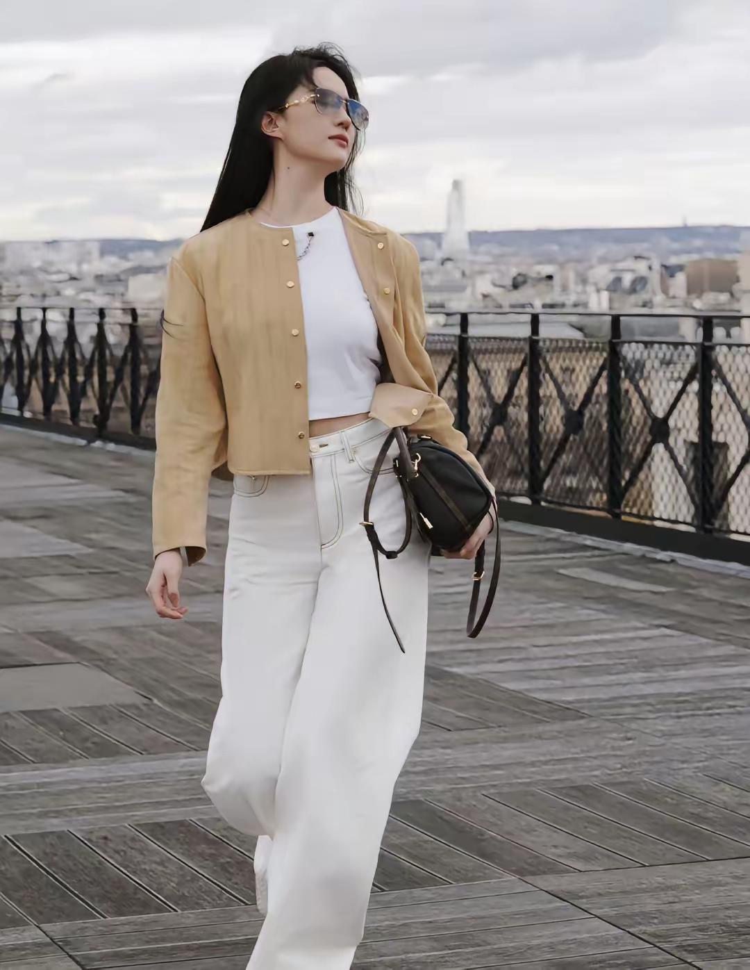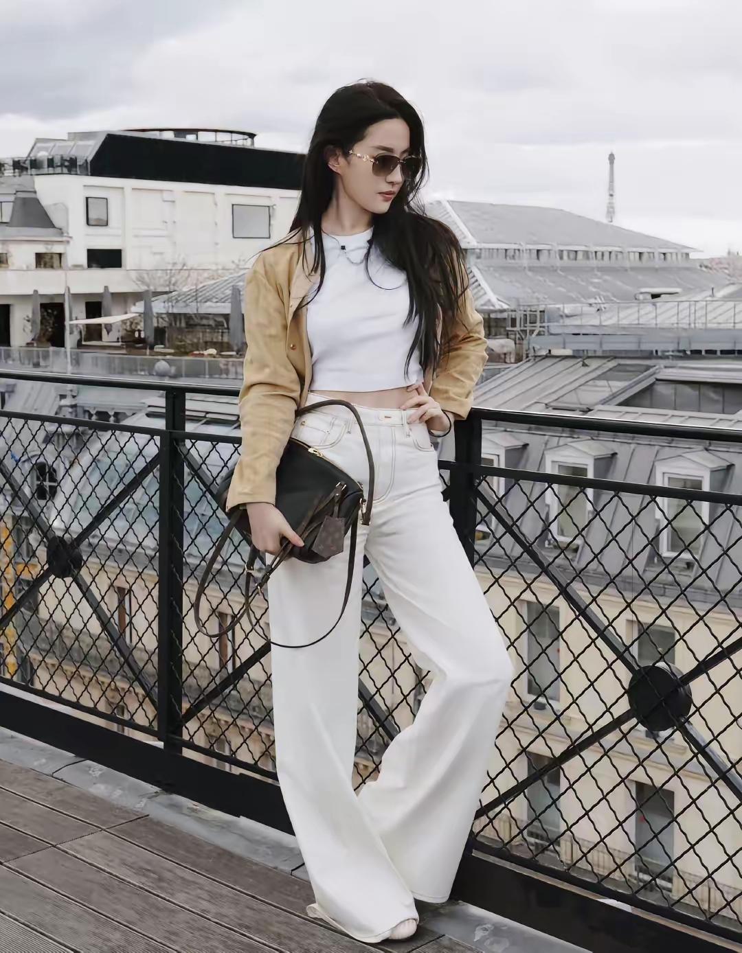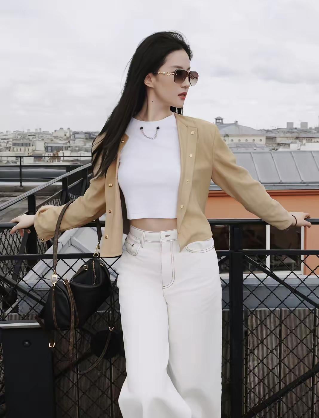刘亦菲最新造型美爆了! 4月2号,刘亦菲在社交平台分享的自己的照片登上热搜成为焦点! 照片中的刘亦菲身穿卡其色小款上衣,内搭白色露脐小背心,下搭白色牛仔阔腿裤,这套造型完美展现出她那凹凸有致的线条美感。 她长发披肩,墨镜遮面,这造型美的令人陶醉!爱了,爱了!