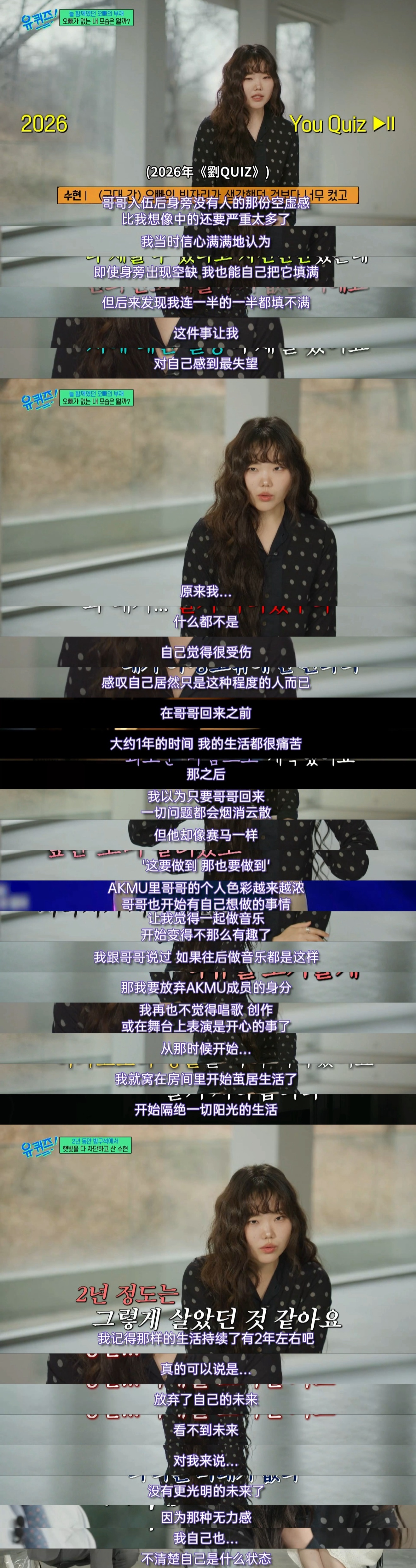 图2 从哥哥入伍之后,妹妹开始对自己无法填补哥哥的空缺而感到失望,甚至想放弃AKMU成员的身份,觉得自己没有未来,只窝在房间里不见阳光的生活了2年