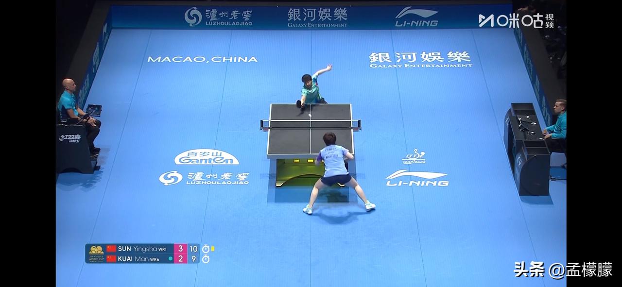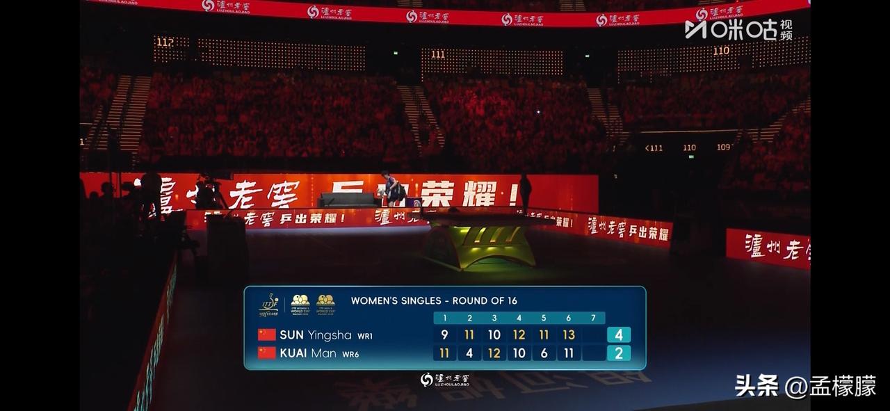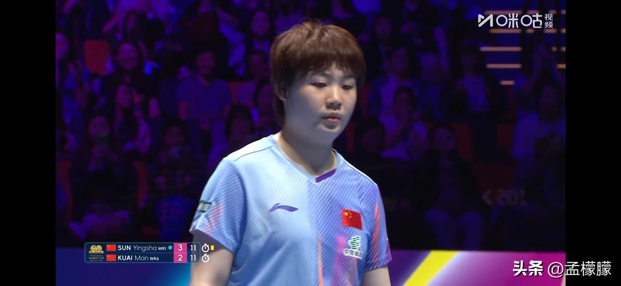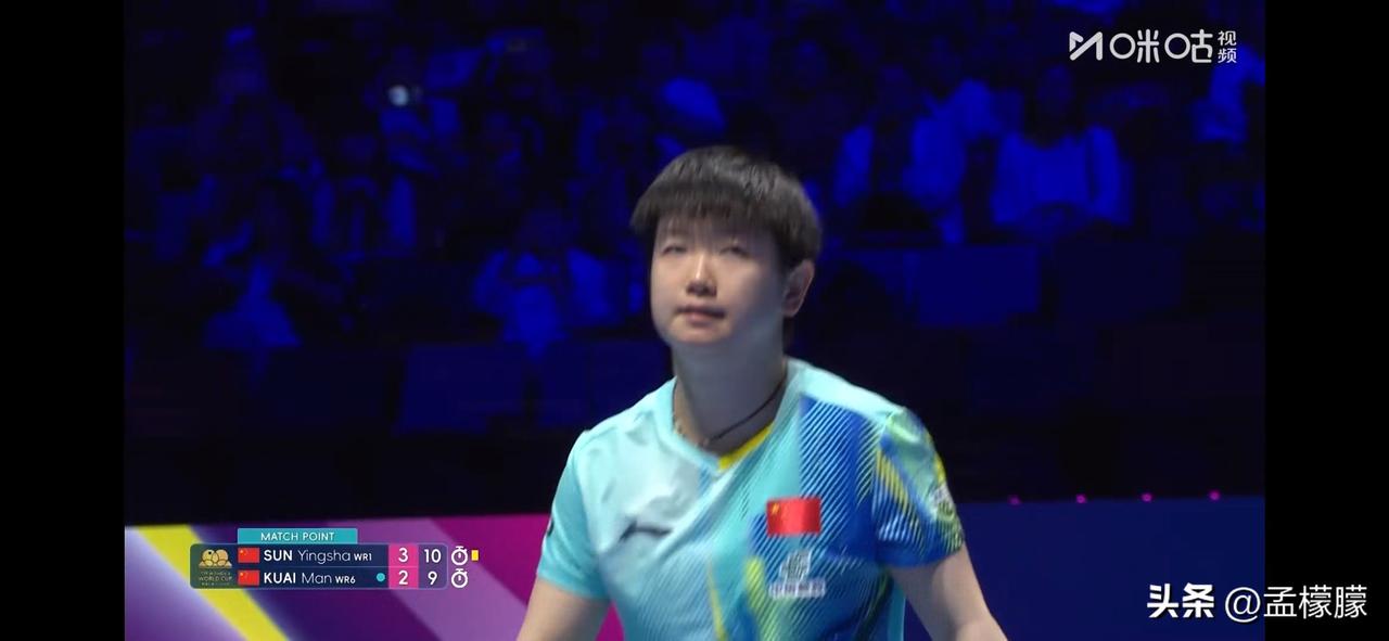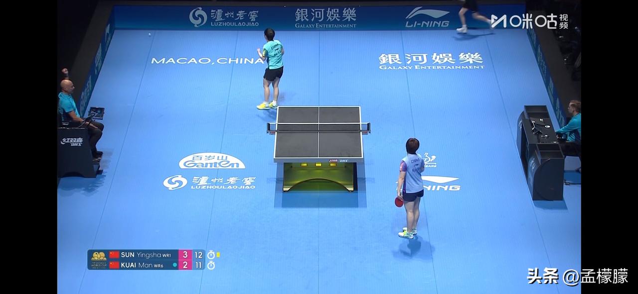 4-2战胜队友蒯曼 ,晋级8强 女单1/8决赛: 孙颖莎(CHN)4-2蒯曼(CHN)【9-11,11-4,10-12,12-10,11-6,13-11】 孙颖莎4比2蒯曼 世乒单打世界杯 澳门男乒乓球 乒乓球 澳门世界杯
