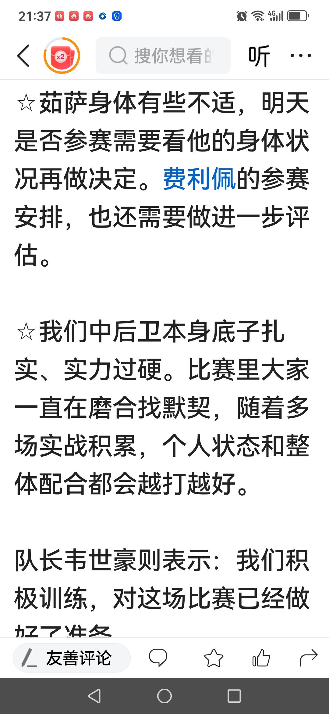 阿洛伊西出席明天对阵西海岸的新闻发布会,有两点未知数值得一提。 痛点是老费伤未痊愈,茹萨又出问题,如果不是烟幕弹,那就有点揪心,这训练安排或体能教练就值得总结。 亮点是说中后卫底子扎实,实力过硬,一直在磨合找默契,随实战积累,不会再发生上轮15分钟丢3球的问题,估计他已给索罗金和韩鹏飞添加了黏合剂。希望阿洛伊西做的比说的好,明天坚决拿下西海岸,继续坐稳头把交椅。