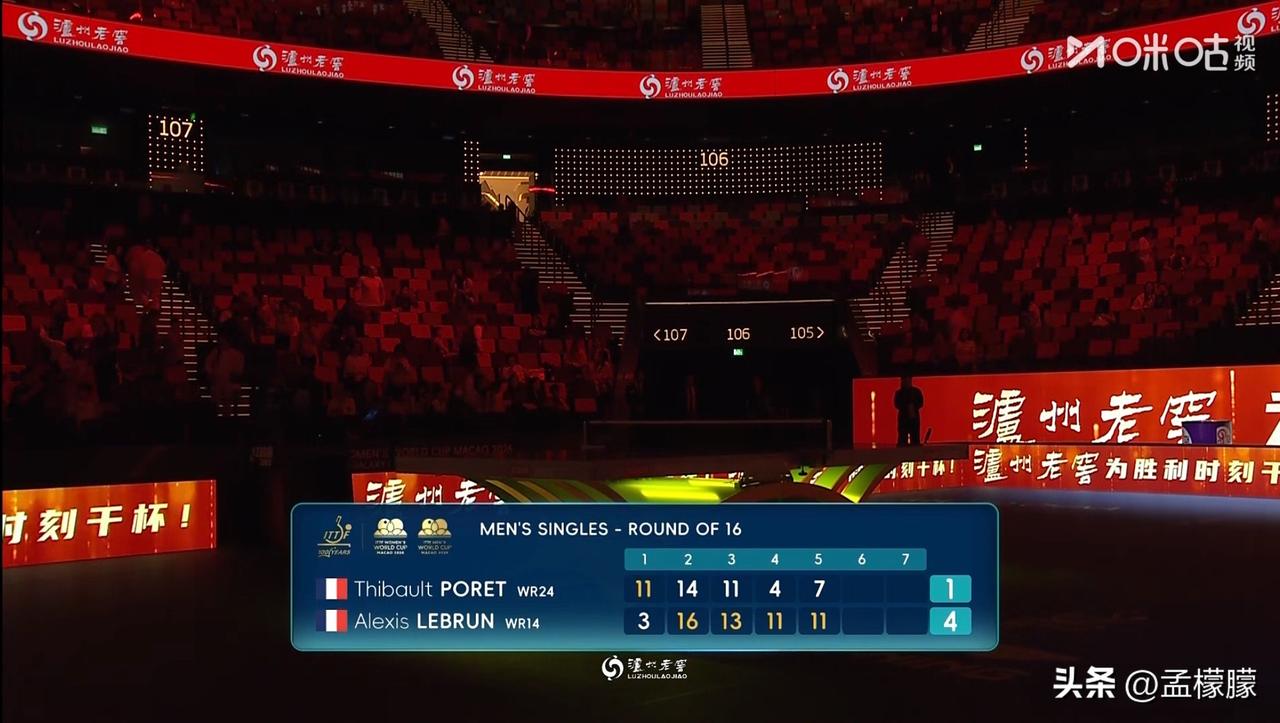 男单1/8决赛: 艾利克斯·勒布伦(FRA)4-1迪博·泊雷特(FRA)【3-11,16-14,13-11,11-4,11-7】 世乒单打世界杯 澳门男乒乓球 乒乓球 澳门世界杯