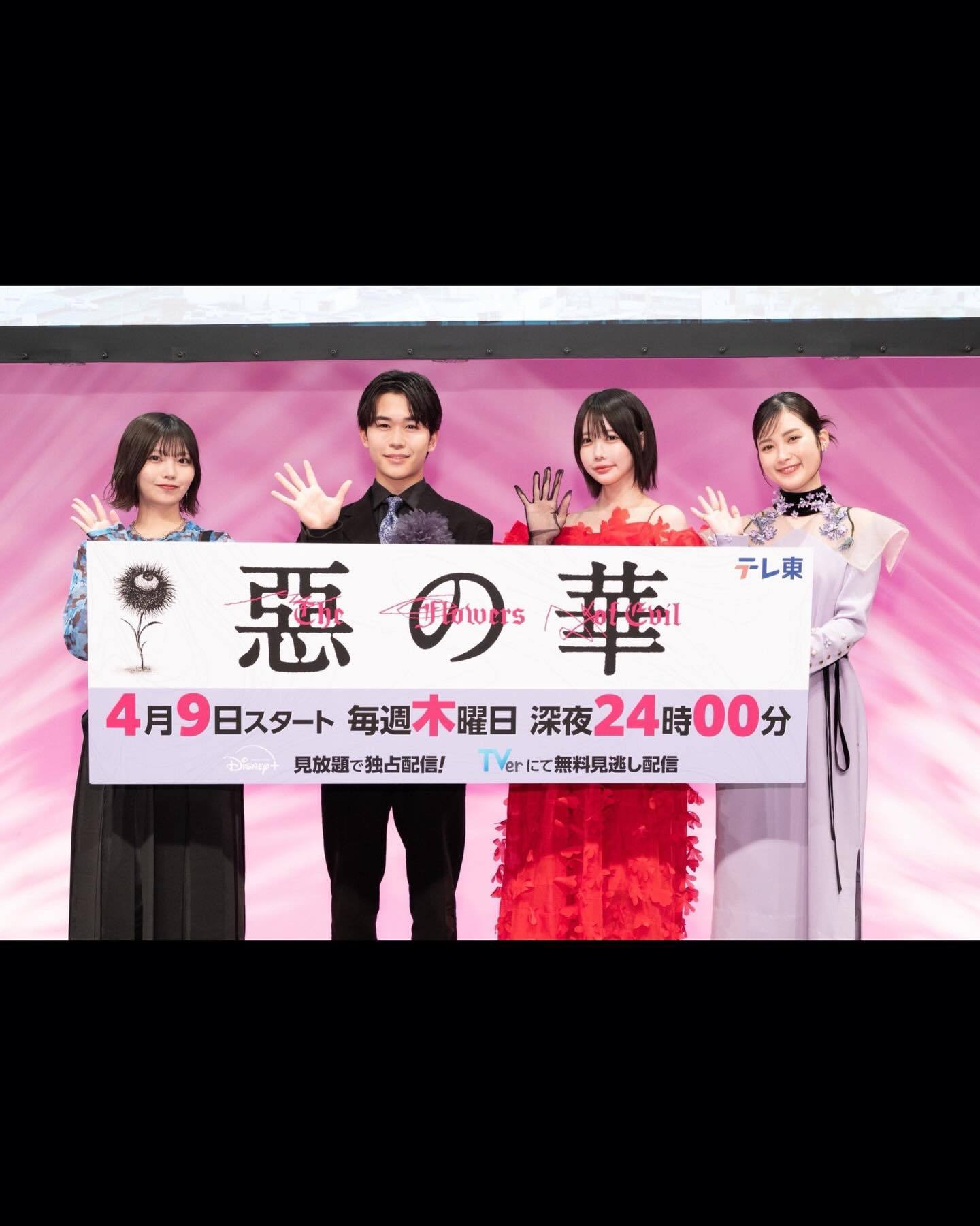 中西アルノ「本日、ドラマ「惡の華」の記者会見に登壇させていただきました。常磐文役を務めさせていただきます。4/9よりスタートです。よろしくおねがいします💐」