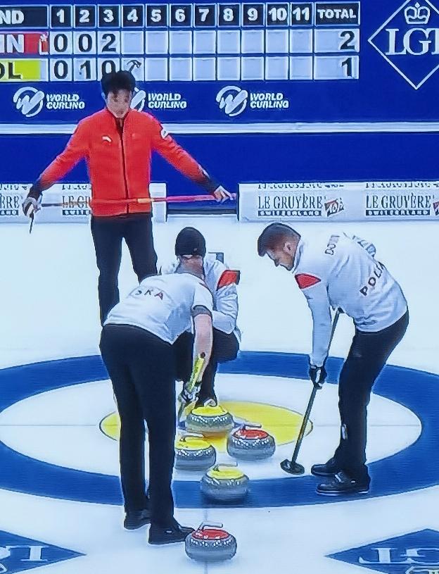 2026男子冰壶世锦赛循环赛 中国队最新战绩: 5胜6负,暂列第7位,确定无缘跻身六强进入淘汰赛。 8-7 胜捷克 2-9 负瑞典 4-7 负意大利 9-4 胜挪威 8-7 胜日本 2-8 负瑞士 4-8 负加拿大 3-9 负苏格兰 5-6 负美国 8-4.胜韩国 9-5 胜德国 晋级六强队伍:瑞士、瑞典、加拿大、苏格兰、意大利、美国。 上午9:00 :中国队本次赛会最后一战,也是捍卫荣誉之战,对阵目前战绩2胜9负的波兰队。 前4局比完,中国队2-3落后, 第5局中国队后手,比赛仍在进行中……