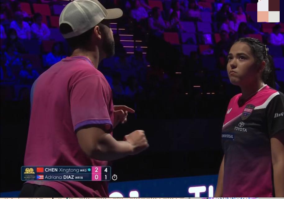 有惊无险,陈幸同4:2迪亚兹晋级世界杯8强——国乒女队4人晋级8强! 恭喜孙颖莎 王曼昱 王艺迪 陈幸同四人晋级世界杯8强! 4月3日澳门世界杯女单1/8决赛中, 陈幸同4:2迪亚兹,晋级女单8强! 11:7,11:6,12:14,11:13,12:10, 13:11, 迪亚兹涨球啦, 特别是迪亚兹的侧切发球, 和弹一板对同同是一个威胁! 迪亚兹力气大,相持能力强, 陈幸同不能和她拼相持, 只能拼前三板, 加质量,加旋转! 今天场外教练任皓指导非常到位, 情绪价值拉满! 恭喜国乒女队四人晋级8强! 在昨天的1/8决赛中, 小将覃予宣1:4温特,遗憾出局! 王曼昱4:0伊藤美诚晋级8强, 孙颖莎4:2蒯曼,晋级8强, 王艺迪4:1张本美和晋级8强! 陈幸同下一场对阵韩莹和申裕斌 的胜出者,继续加油! 日乒女队目前就剩桥本帆乃香了, 估计会被高桥拿下!