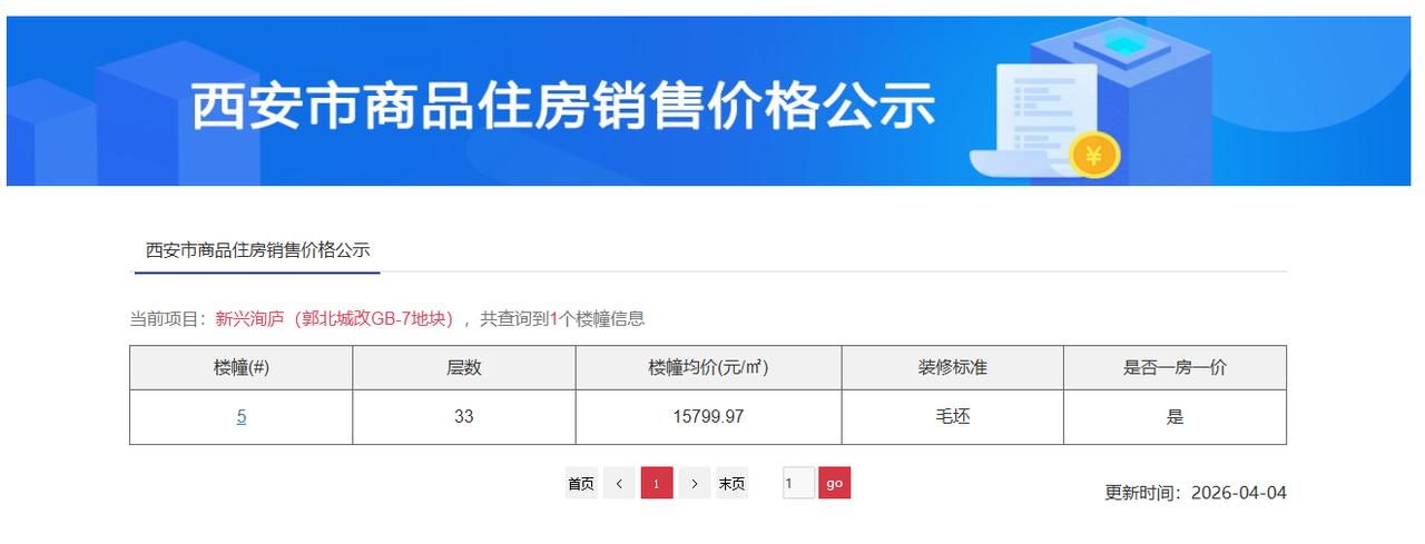 快讯!刚刚,西安住建局官网公示了长安区大学城板块“新兴·悦享之城项目”新一批批房源的价格,均价15799.97元/㎡! 新兴·悦享之城项目(备案名:新兴洵庐(郭北城改GB-7地块))位于西安城南大学城板块,总占地约434亩。项目规划2大TOD社区综合体、主题步行商业街及社区便民商业;规划约3万㎡城市公园及2个口袋公园。 项目首开地块占地约56.7亩,位于西安长安区郭杜街道高阳二路以西、郭杜东街以南,绿地率约35%,容积率3.4,共规划11栋小高层和高层,产品全新4代纯T2住宅。 项目规划约1400㎡下沉式艺术会所,会所功能着重考虑使用频率更高的老人与孩子,嵌入健身与瑜伽空间;园林以约1500㎡阳光草坪为核心,将全龄儿童乐园、亲子休闲书吧、林下会客吧、宠物乐园等功能空间紧密串联.... 本次价格公示,项目公示了5 楼 的价格,是一栋33层的高层(带一个单元的12层小高),2梯2设计,户型面积139.45㎡、126.75㎡、139.74㎡、127.29㎡、108.72㎡、107.97㎡,楼栋均价为15799.97元/㎡,共88套毛坯房源。 项目距离西安地铁15号线樱花广场站仅约240米,周边樱花广场、长安区医院、佳龙 EMC 城市广场、交大教育集团西安长安区第15小学(规划中,规划 24 个教学班)、长安区3馆1中心(图书馆、博物馆、文化馆、体育中心)、方圆荟、万科生活广场、CCWorld·樱山下(在建中)、郭杜森林公园等配套环绕。 另外项目近长安大学城,周边西北大学、陕师大、西安外国语大学等环伺,书香氛围浓厚。