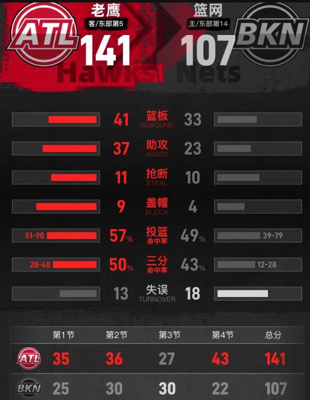 34分?这不是分差,这是篮网给球迷写的道歉信,还是手写的,特诚恳那种。 赛前一看名单,老鹰把特雷-杨、亨特俩"顶梁柱"全撤了,活脱脱一副"今儿咱练兵"的架势。篮网呢?乔迪-费尔南德斯教练赛前那话还在耳边飘:"我们有五个首轮秀,得练年轻人。"得,天赋碾压局,怎么也该是一场菜鸡互啄吧?结果?老鹰第三节没打完就领先30分,打得篮网像来买单的客人,不是来打球的。 这叫"残阵"?这叫"满级大佬卸了装备,拿板凳照样把你号封了"。 戴森-丹尼尔斯,这哥们之前连首发都不稳,今儿25分钟8个助攻,防守端跟装了磁铁似的。里萨谢更绝,21分入账,三分抬手就有,那球滑得,篮网防守人连衣角都摸不着。更扎心的是奥孔古和杰伦-约翰逊,俩内线往那一杵,篮板卡得跟抢车位似的,一点余地不留。37次助攻,球不粘手,这就是老鹰的体系——有没有球星,它都转。 反观篮网?五个首轮秀,克洛尼12分还把自己驱逐了,剩下几位得分加起来不够丹尼尔斯一个人砍的。第四节老鹰都换上第三阵容了,篮网首发还在场上被摩擦,分差一度拉到34分。乔迪教练那表情,生无可恋,跟听了十遍《凉凉》似的。 别拿"潜力"当遮羞布了。 潜力这东西,不开花就是野草。老鹰这帮"无名之辈"用37次助攻告诉你:团队篮球不是PPT,是执行力。篮网那"五大首轮秀"?搁那儿插土里了,光长个儿不长心。 末节垃圾时间,看着老鹰第三阵容还在跑战术,篮网主力却像被抽了魂。我忽然明白了——天赋的差距可以用汗水填,但态度的窟窿,老天爷也堵不上。 老鹰东部第五,四连胜在手;篮网"弗拉格碎片"又添一片。可今儿这球看完,我只想问费尔南德斯一句:您这"培养",培养的到底是球员,还是盆栽?老鹰34分大胜篮网