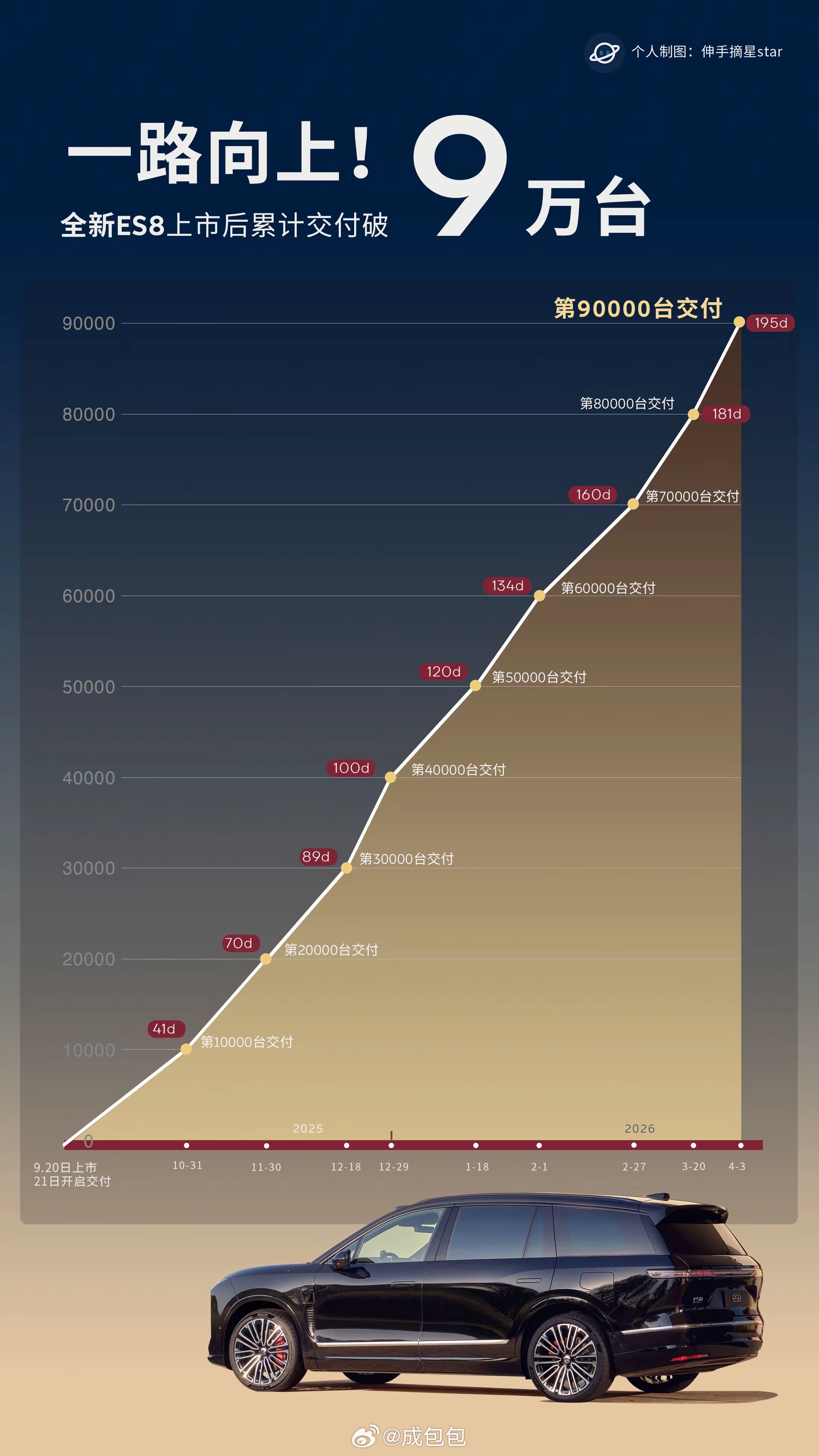 ES8 9万台达成海报图一 蔚来官方图二 图三 8万台-9万台 只用了14天这个