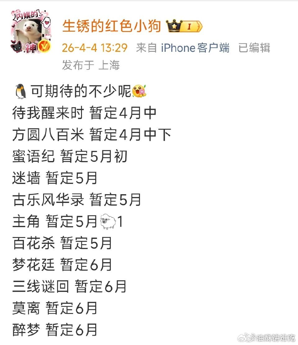 四大平台近期排播