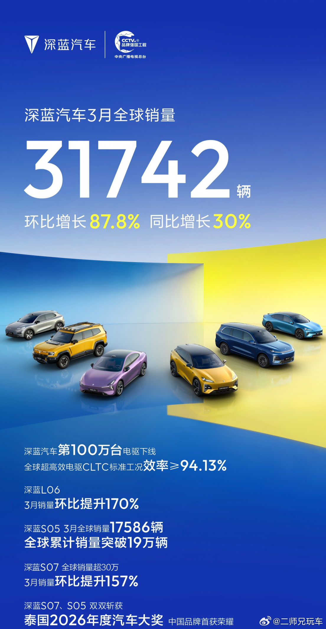 虽说新能源赛道的长跑远未结束,但至少深蓝汽车踩稳了自己的节奏,不靠单一车型出圈,不靠营销造势,而是靠体系技术能力一步步往上走。这让我们有理由相信,深蓝汽车会持续给我们带来更多惊喜。深蓝汽车3月全球销量31742辆