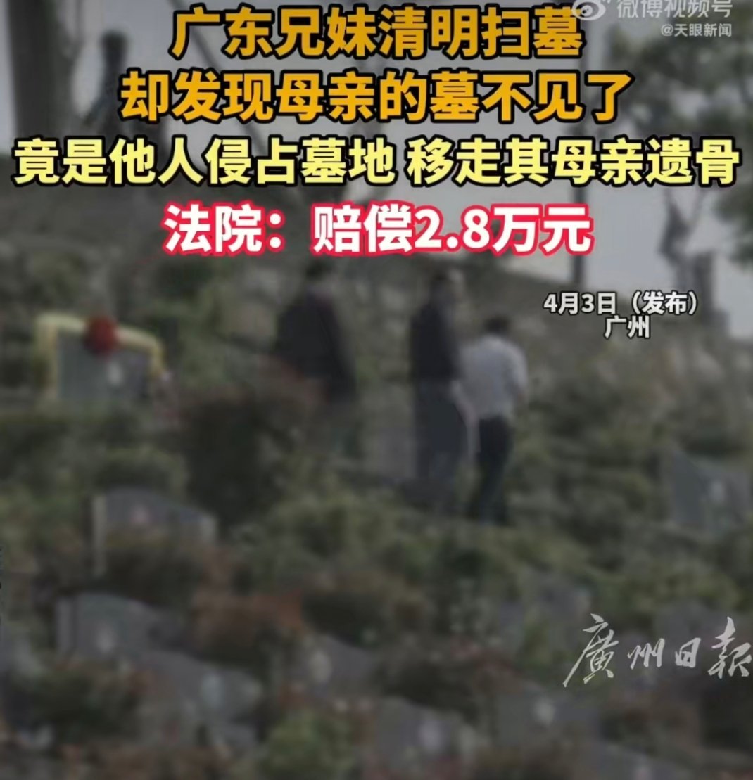 清明上山扫墓却发现母亲的墓不见了天啊,还有这操作???连人家坟都敢随便挖,没有敬畏之心,小心坟主人半夜找你!此举严重违背公序良俗,侵犯他人权益。法院判决赔偿合理合法,给此类无视他人情感、破坏传统习俗的行为敲响了警钟,2.8万算少了,28万差不多。